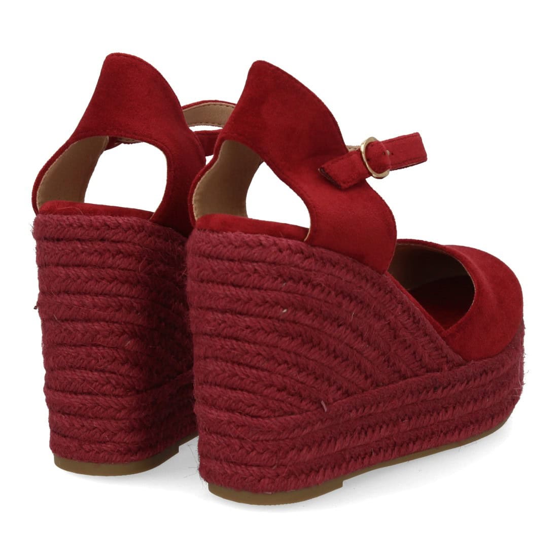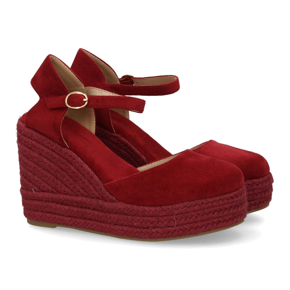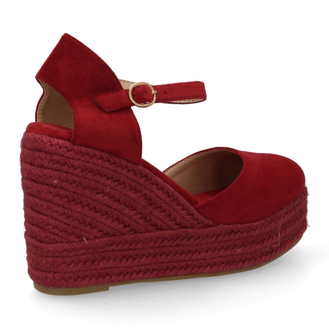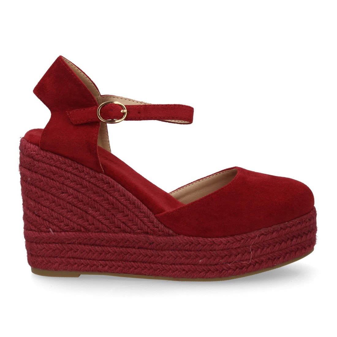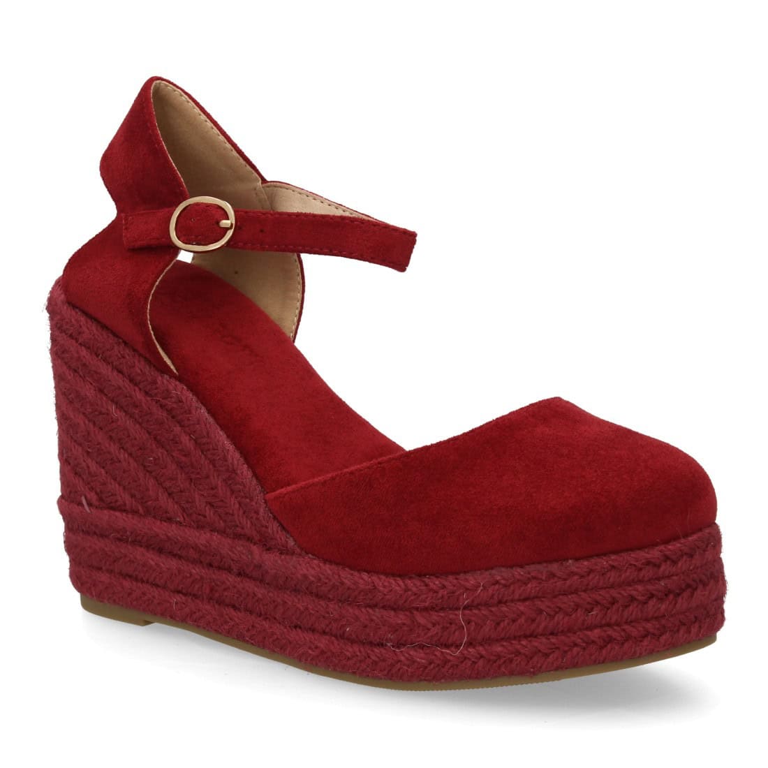Alpargata de mujer con cuña y plataforma, punta y talón cerrados, cierre de hebilla en el tobillo, monocolor, cuña de yute trenzado ligera y cómoda para la temporada verano.