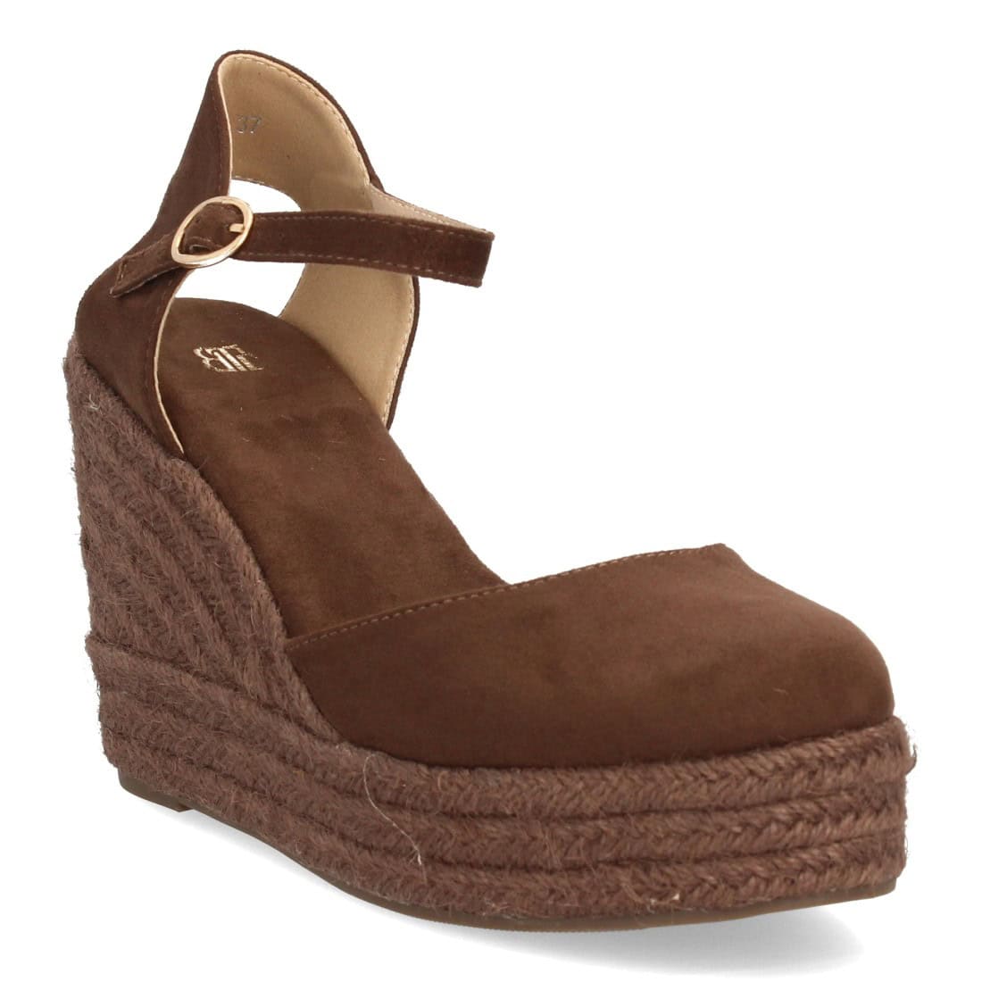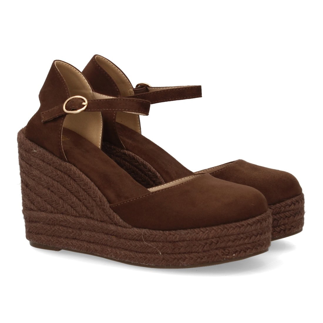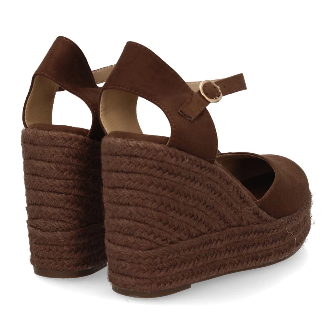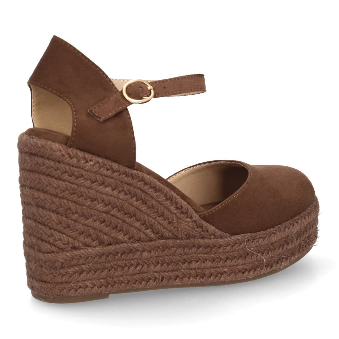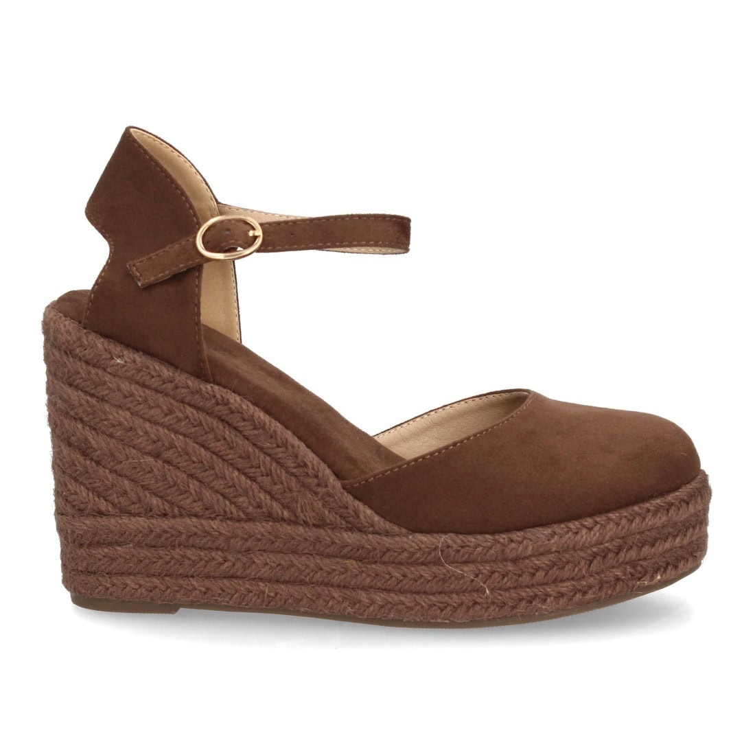 Alpargata de mujer con cuña y plataforma, punta y talón cerrados, cierre de hebilla en el tobillo, monocolor, cuña de yute trenzado ligera y cómoda para la temporada verano.