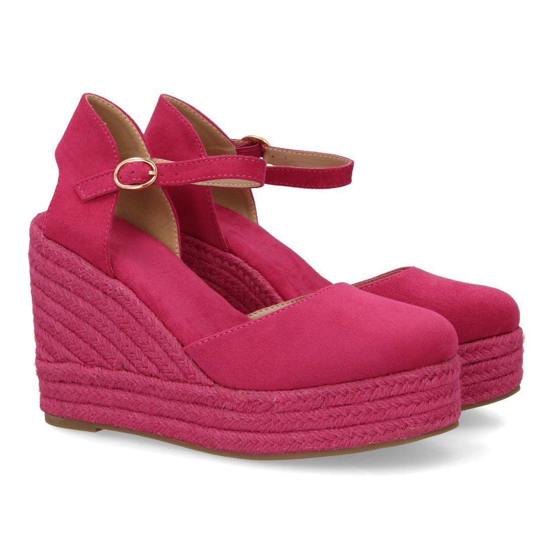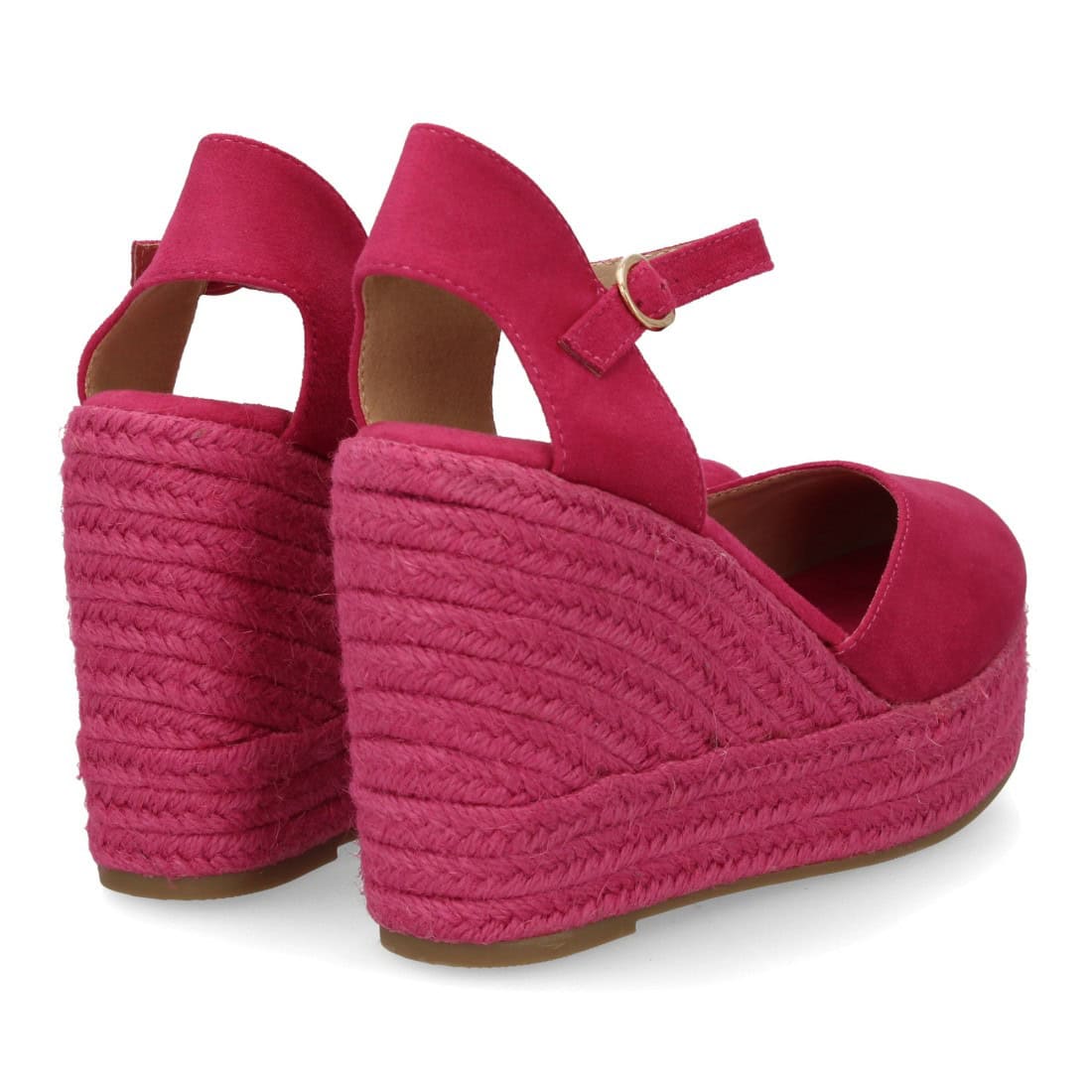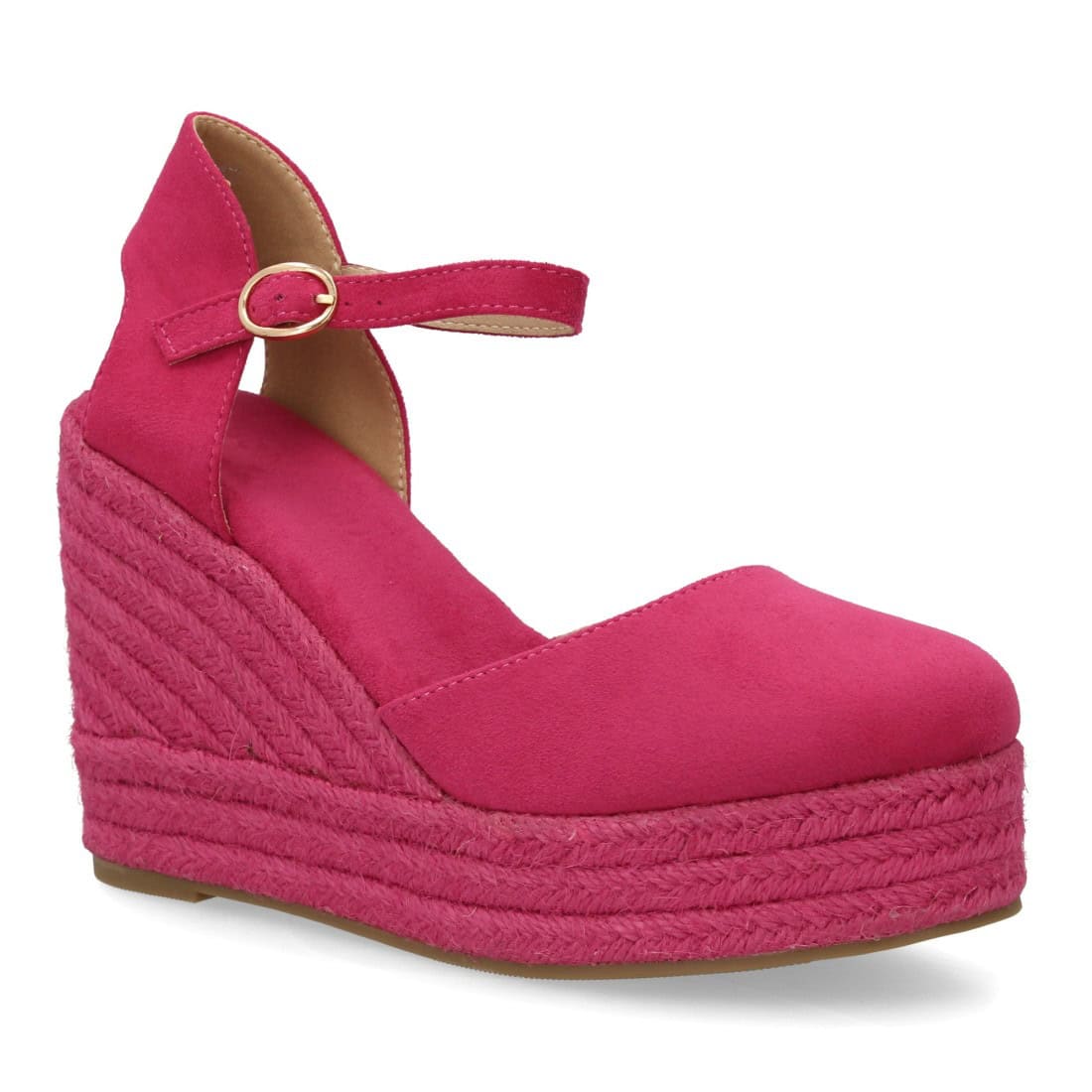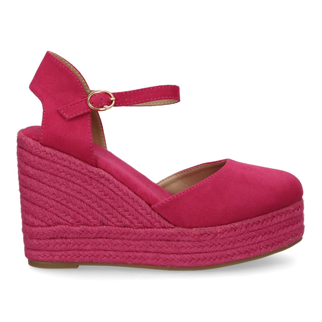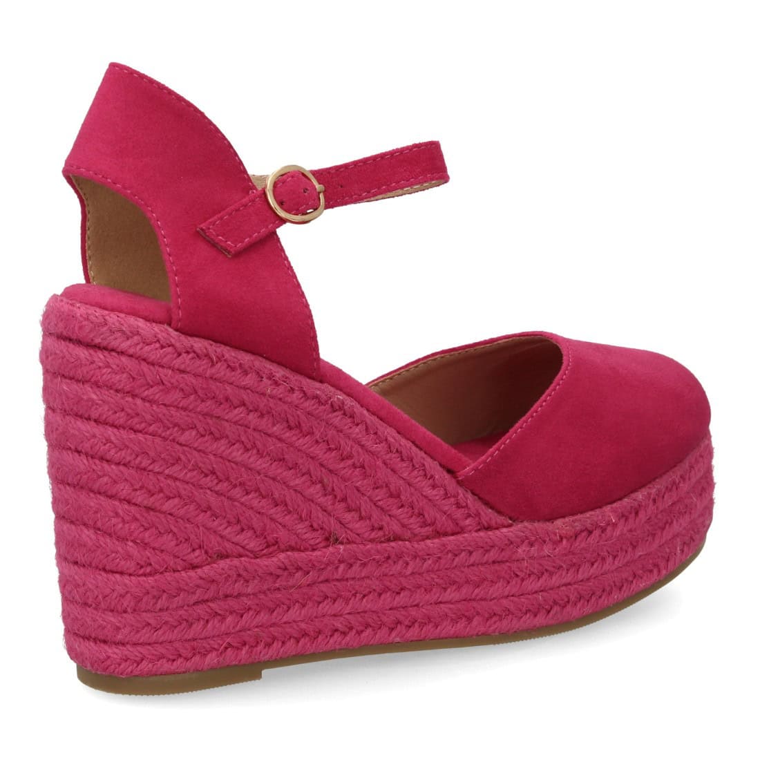 Alpargata de mujer con cuña y plataforma, punta y talón cerrados, cierre de hebilla en el tobillo, monocolor, cuña de yute trenzado ligera y cómoda para la temporada verano.