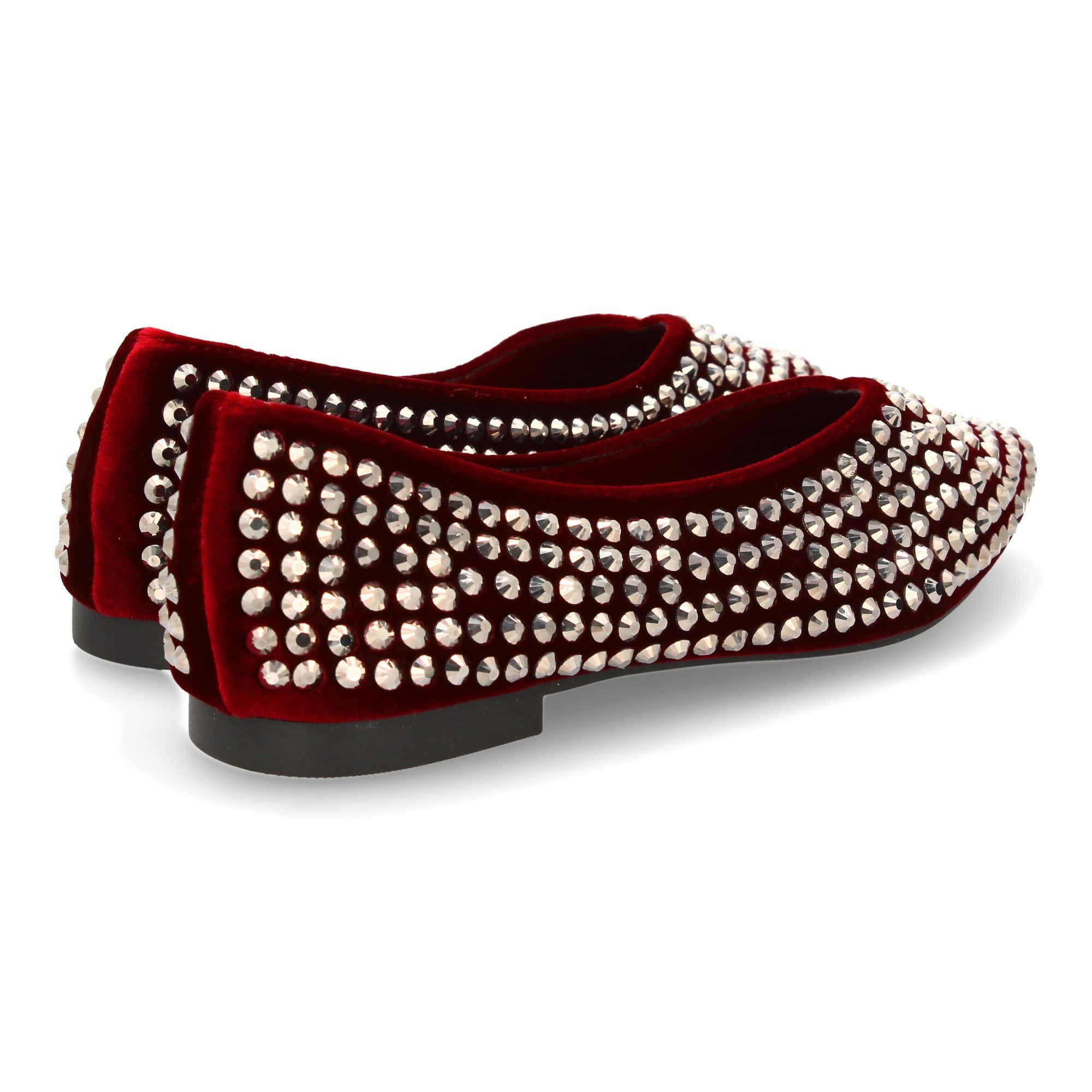Bailarina para mujer con adornos de pedreria brillante, punta fina y suela comoda y sin cierre. Ideal para la temporada otoño invierno.