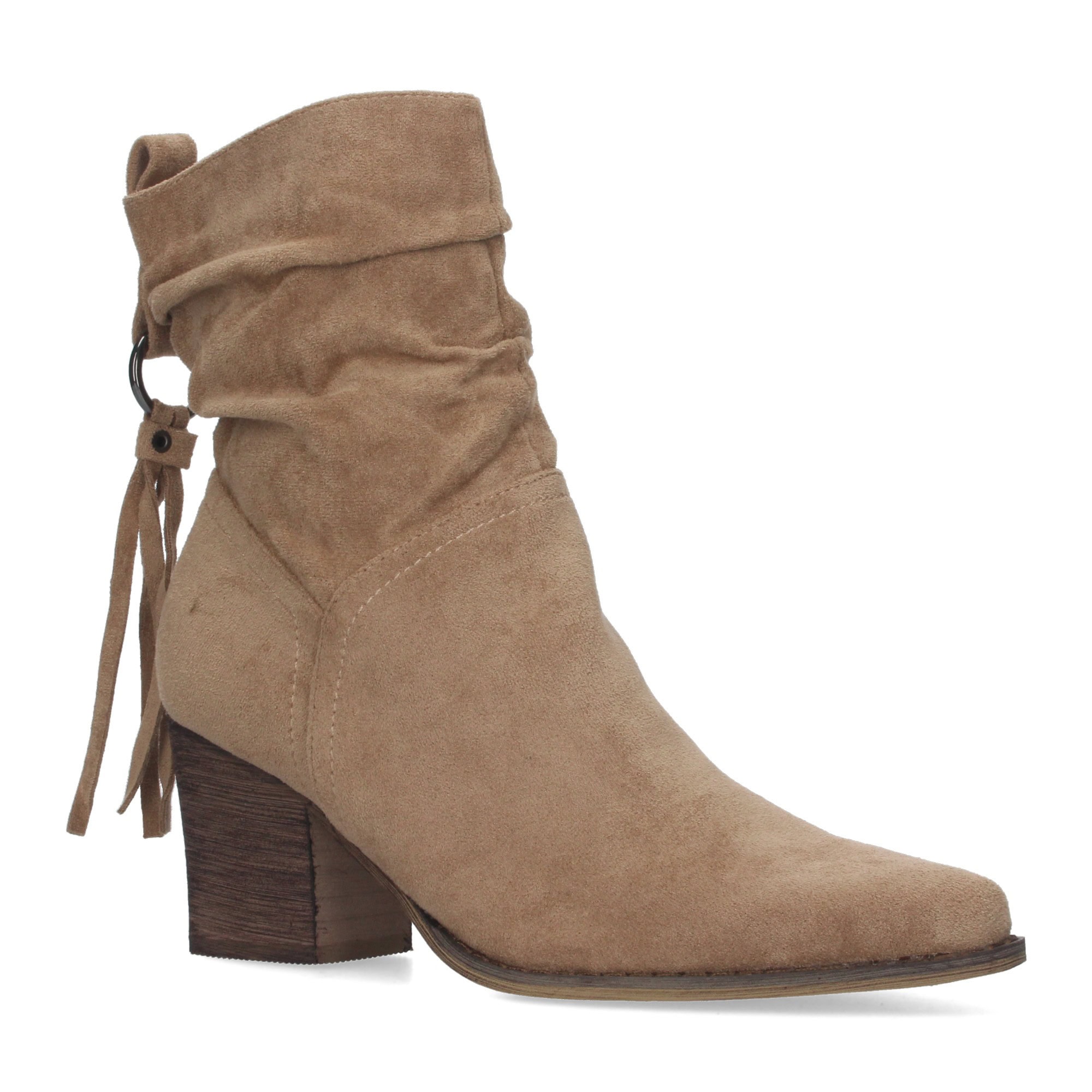 Botin de Tacon para Mujer, de Punta Fina, Caña Arrugada, Flecos en el Talon, y Cierre de Cremallera, Otoño Invierno
