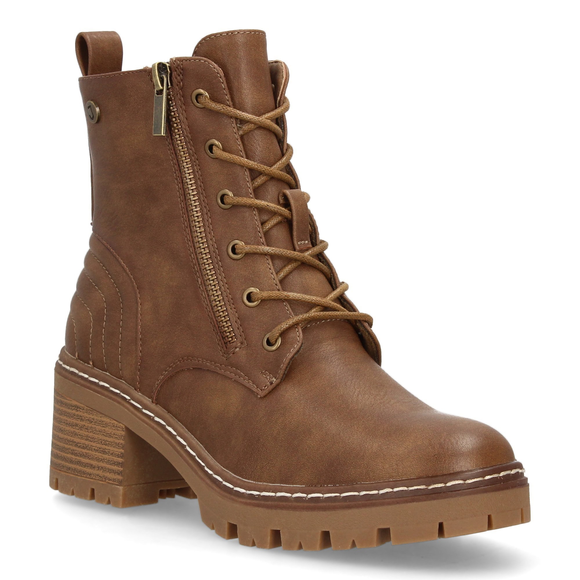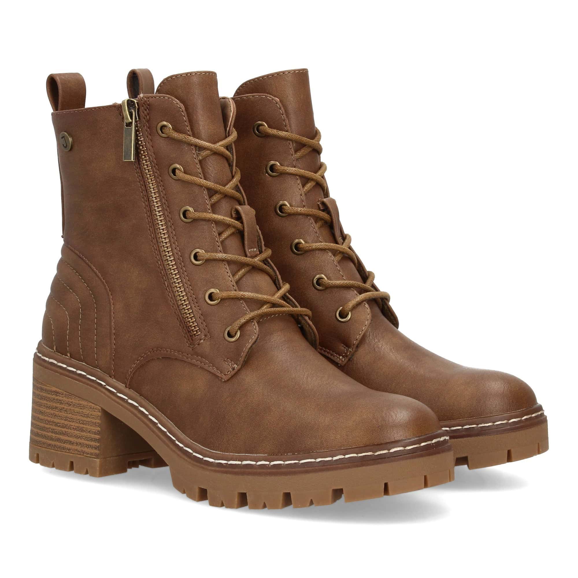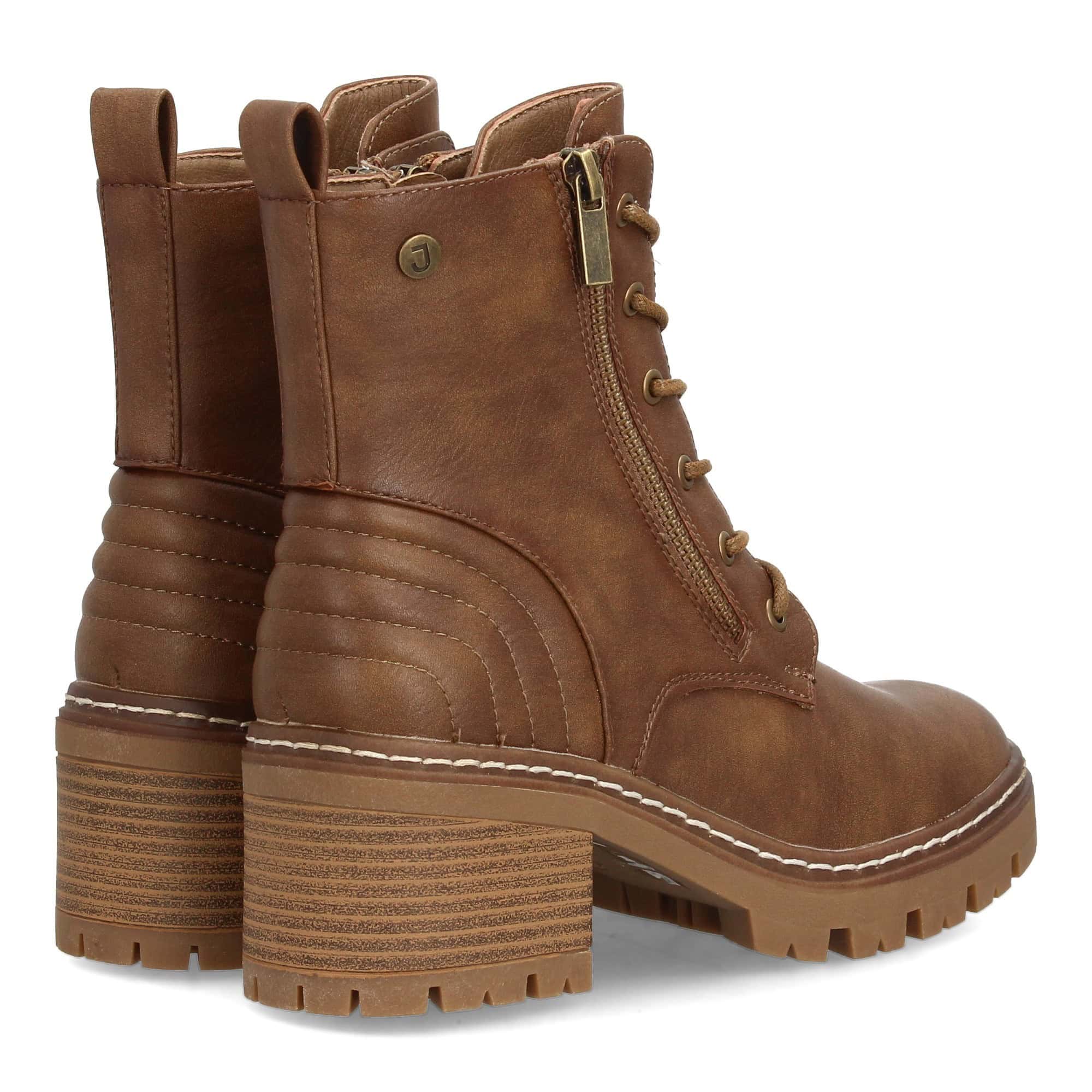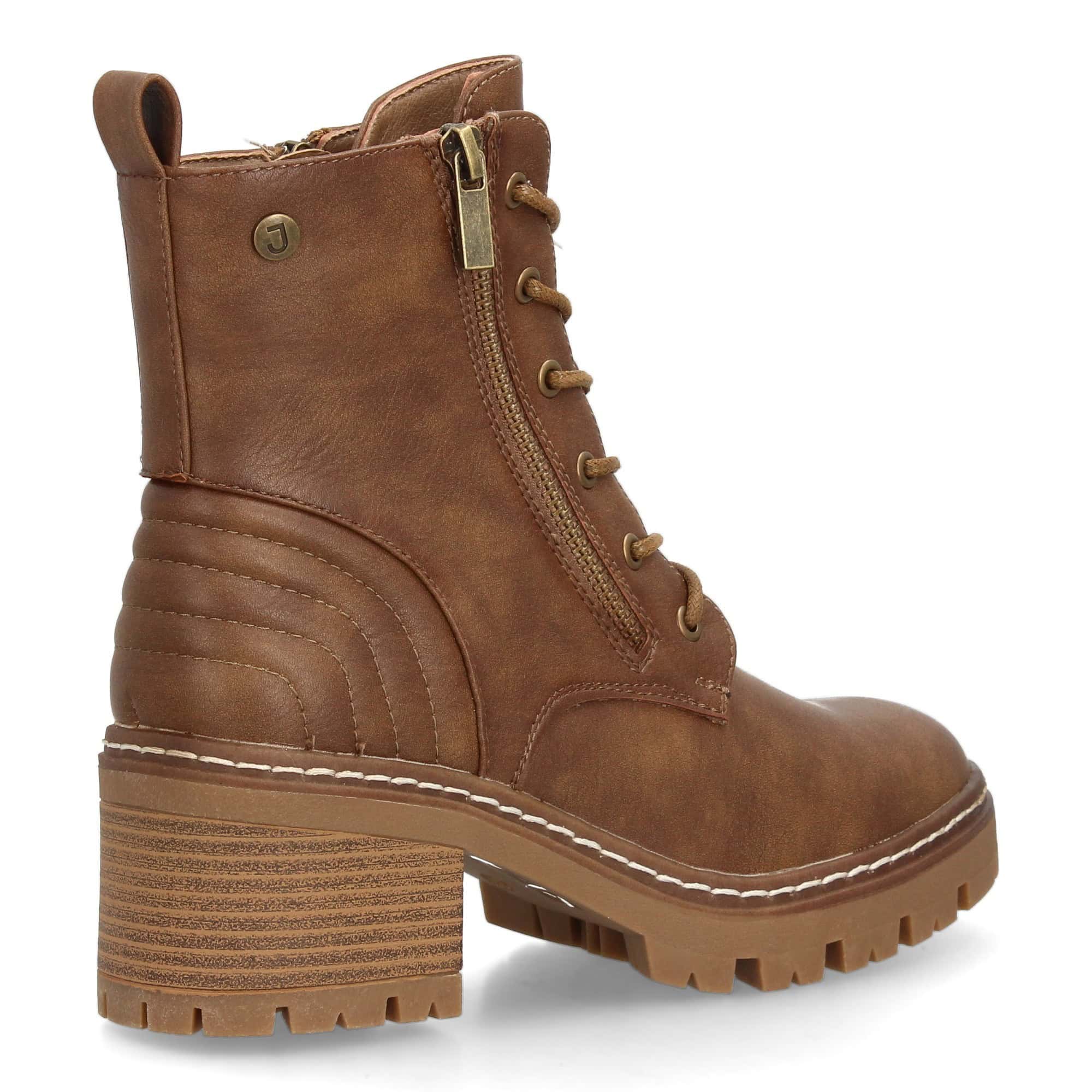Botín de mujer estilo militar con cierre de cordones y cremallera lateral que facilita el ajuste. Detalles acolchados y costuras decorativas. Ideal otoño invierno.