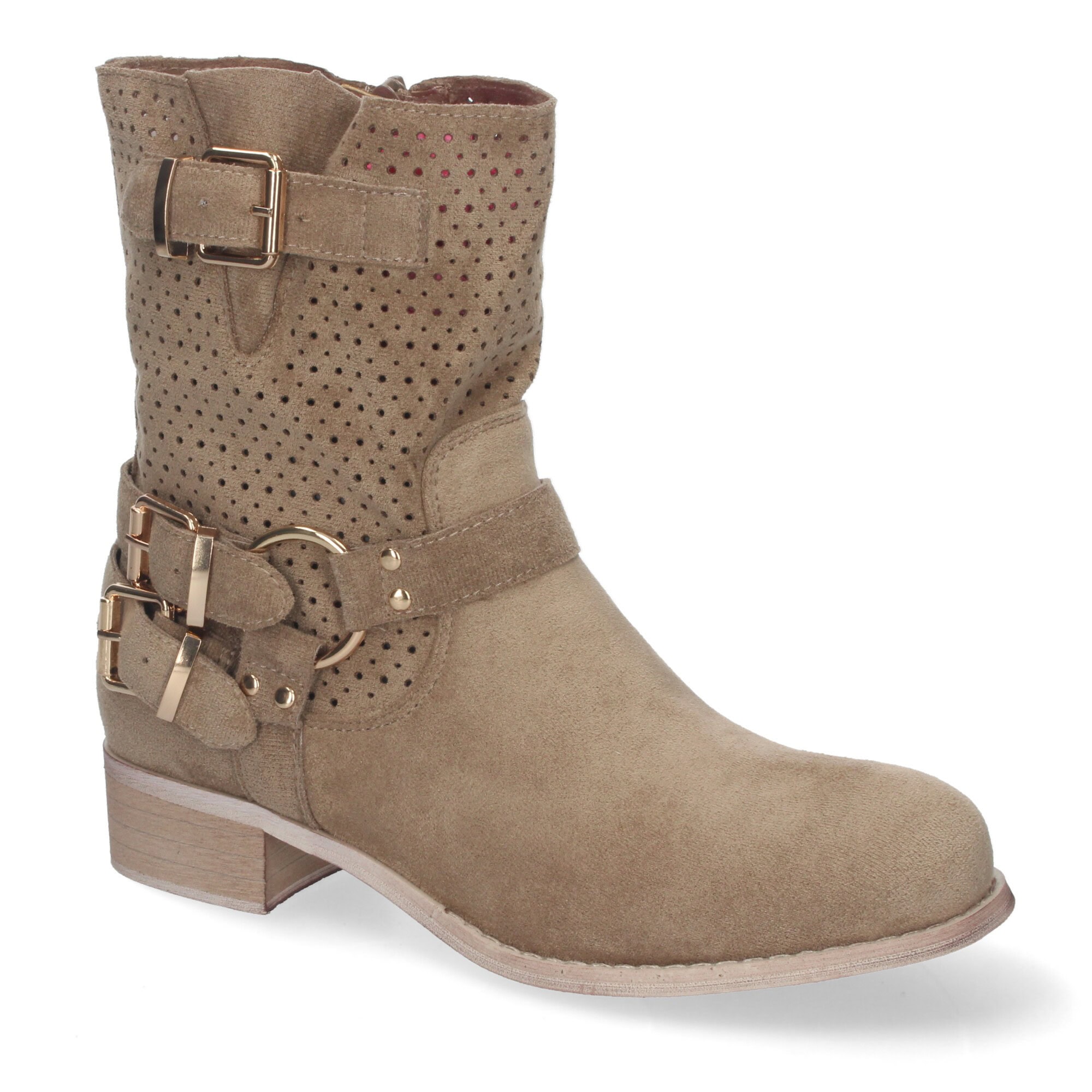 Botines de Mujer con Tacón Bajo y Adornos de Hebillas