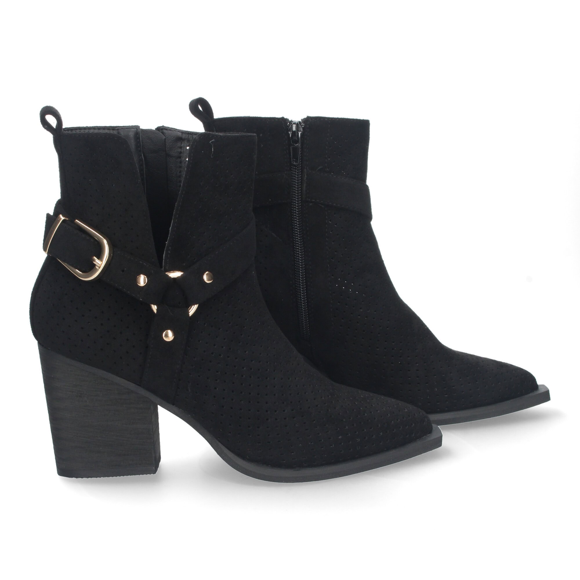 Botines de Mujer con Tacón Campero Elegantes, Diseño Perforado, Cierre de cremallera, Cómodos.