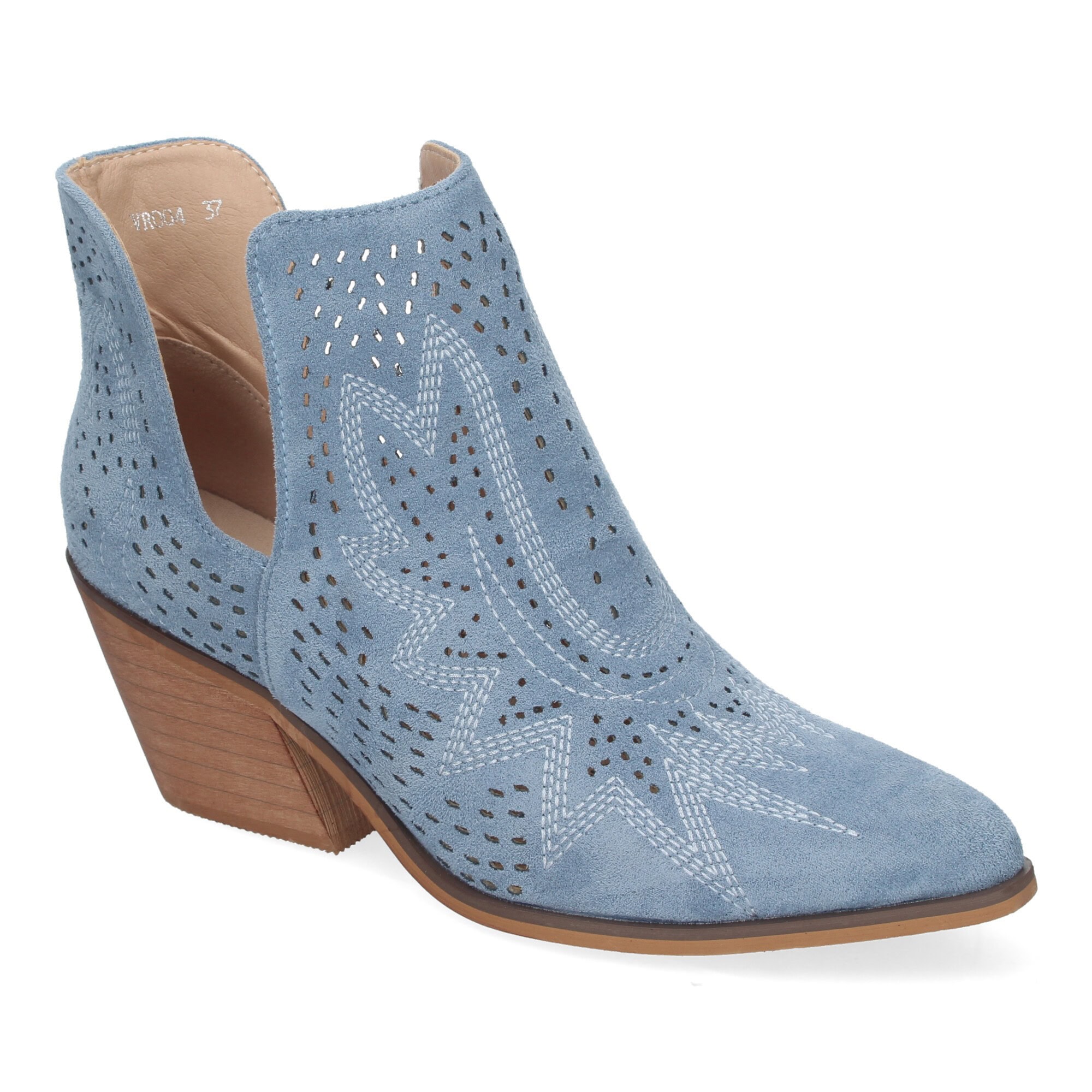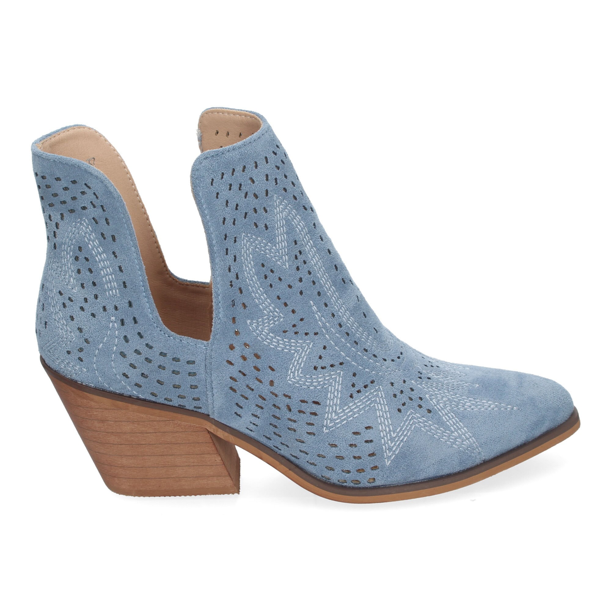 Botines de Tacón Campero para Mujer Primavera Verano Elegantes y Comodos, Diseño Perforado con Estampado en la pala, perfectos para cualquier ocasión.