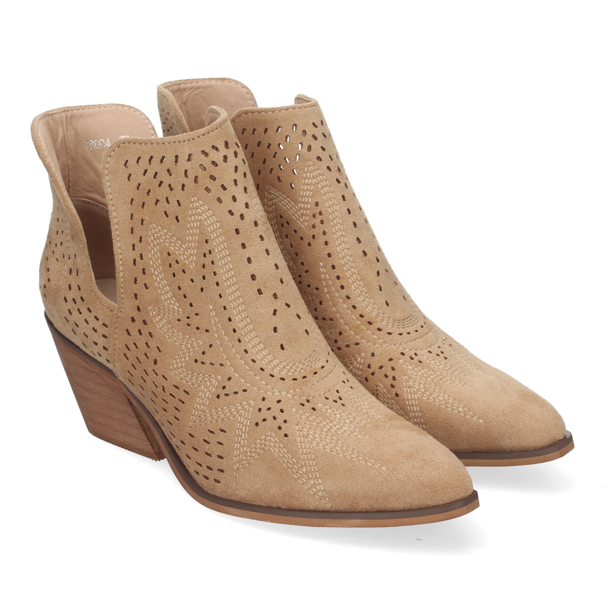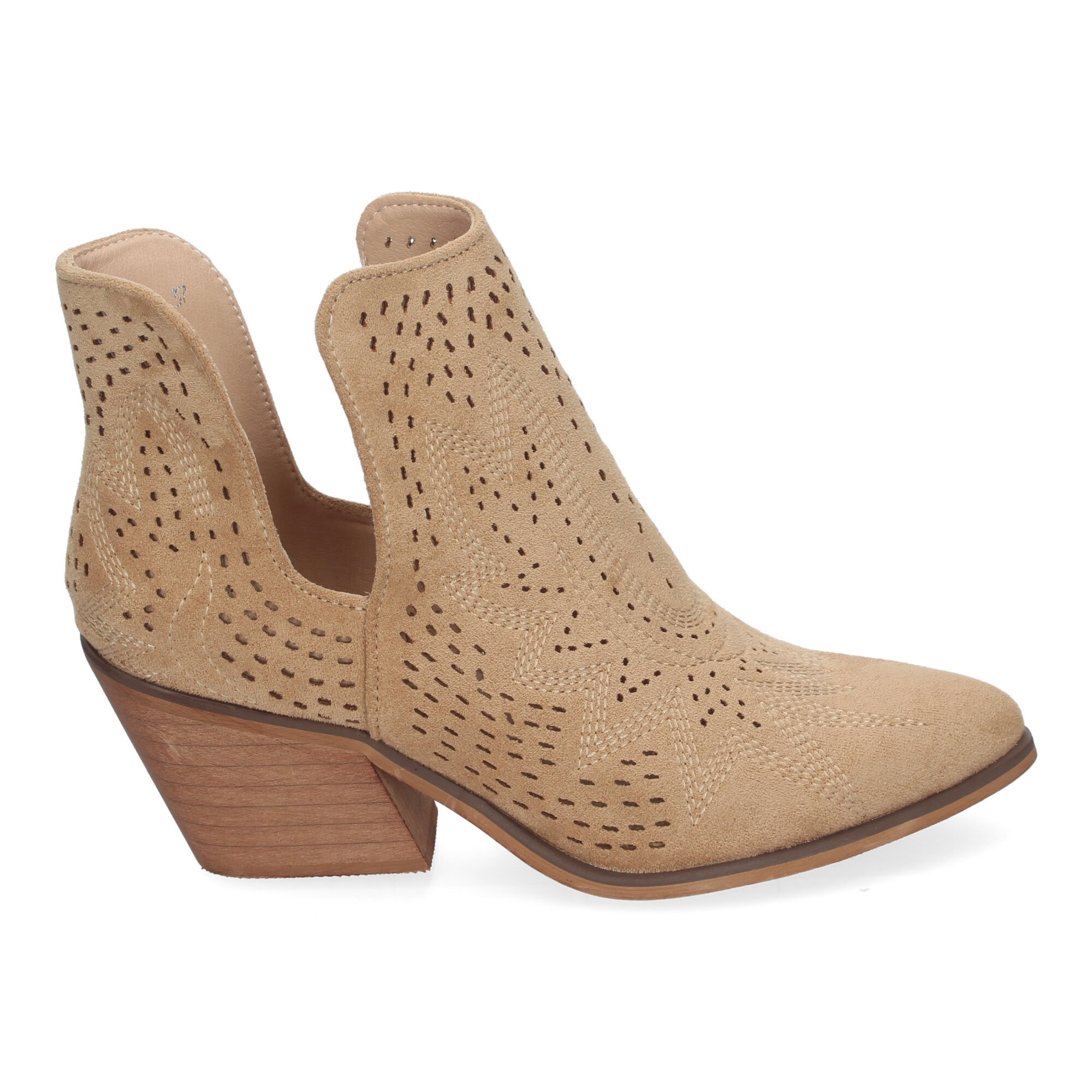 Botines de Tacón Campero para Mujer Primavera Verano Elegantes y Comodos, Diseño Perforado con Estampado en la pala, perfectos para cualquier ocasión.