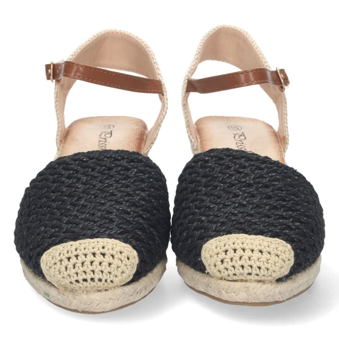 Sandalia de cuña para mujer, estilo valenciana, forrada de yute, pala de rafia, y cierre de hebilla, primavera verano.