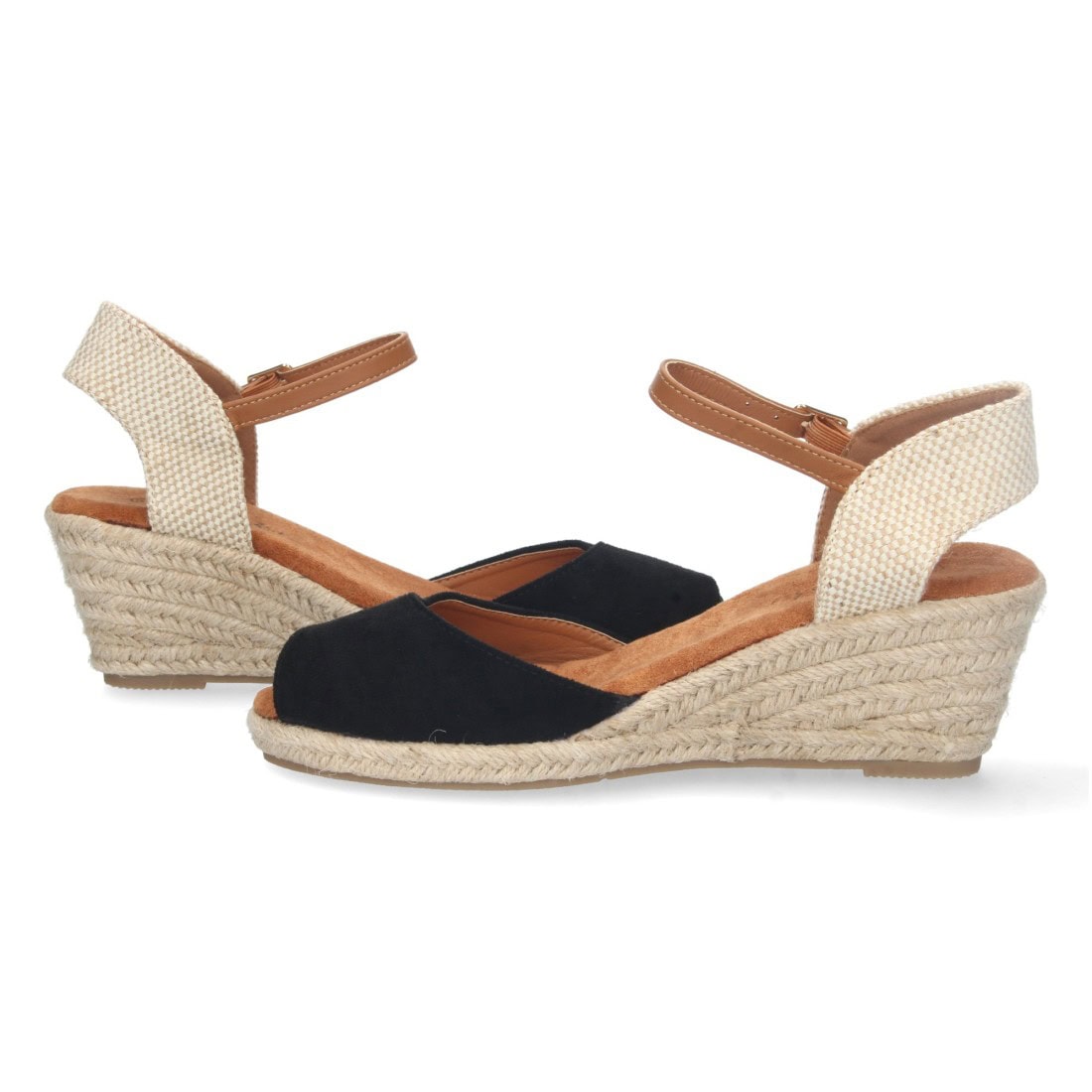 Sandalia de cuña para mujer, estilo valenciana, forrada de yute, pala abierta, y cierre de hebilla, primavera verano.