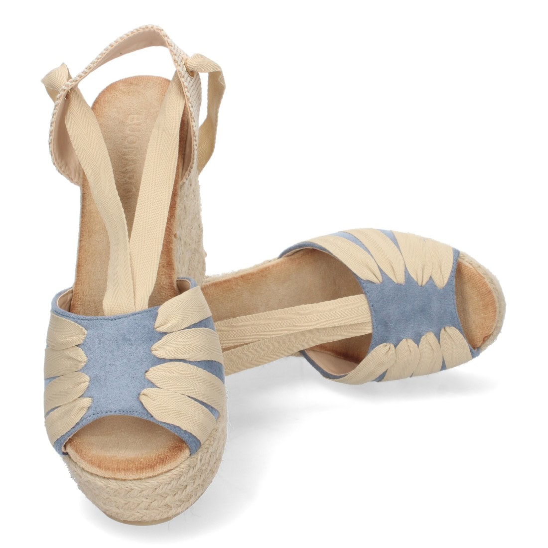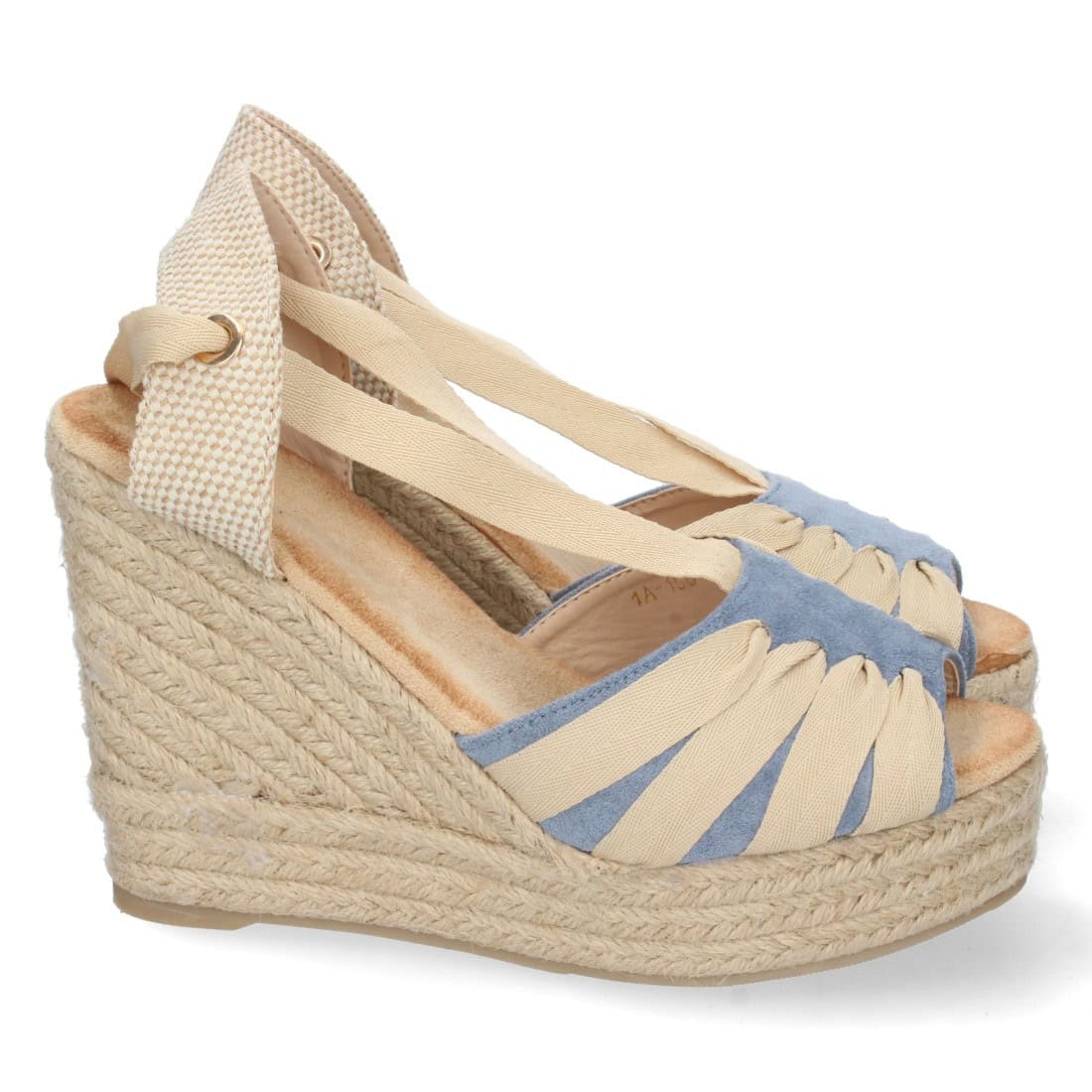 Sandalia de cuña para mujer, forrada de yute, con pala abierta, y cierre de cordones, primavera verano.