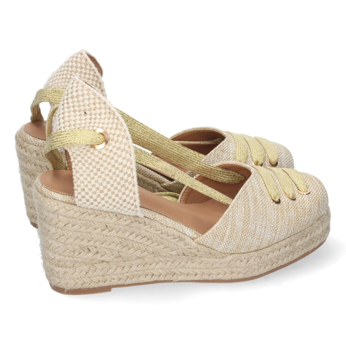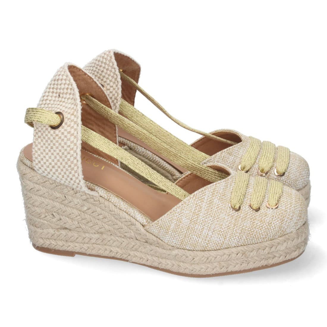 Sandalia de cuña para mujer, forrada de yute, con pala abierta, y cierre de cordones, primavera verano.