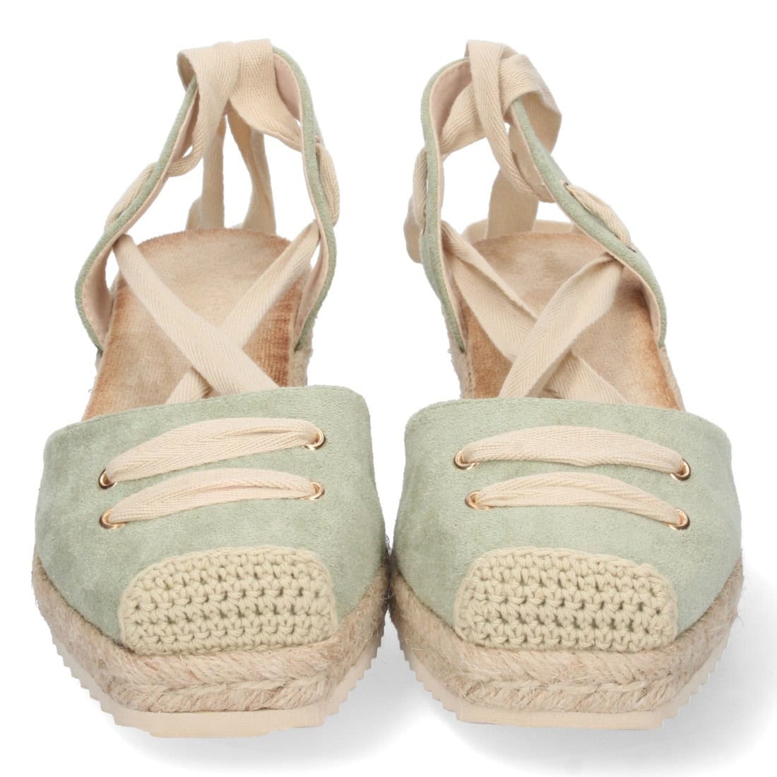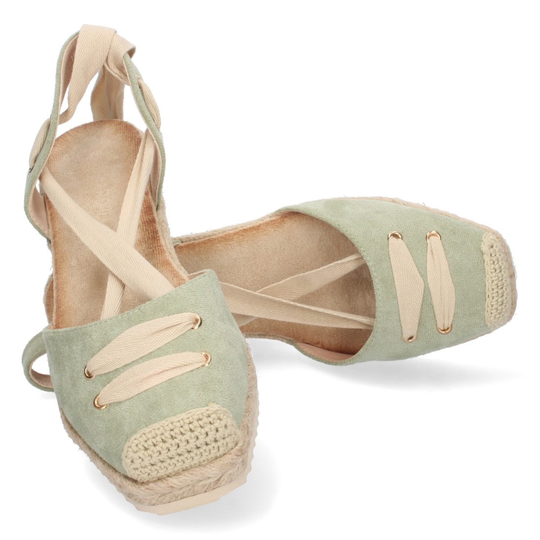 Sandalia de cuña para mujer, forrada de yute, pala cerrada, y cierre de cordones, primavera verano.