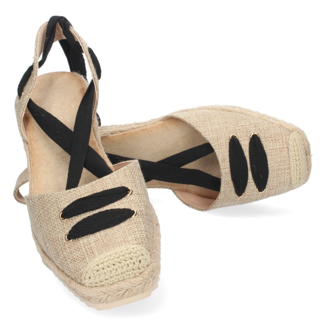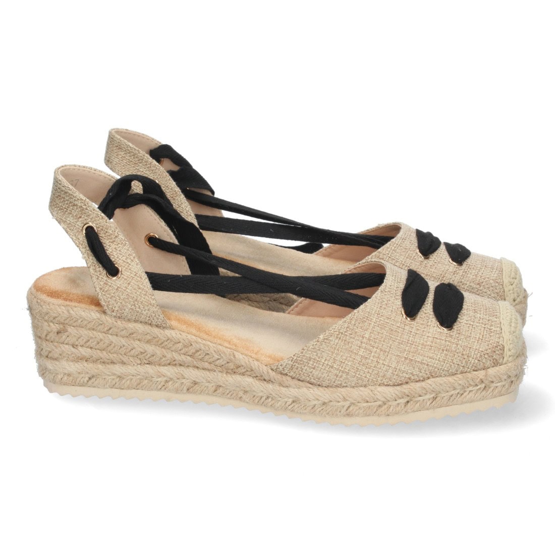Sandalia de cuña con yute y cordones