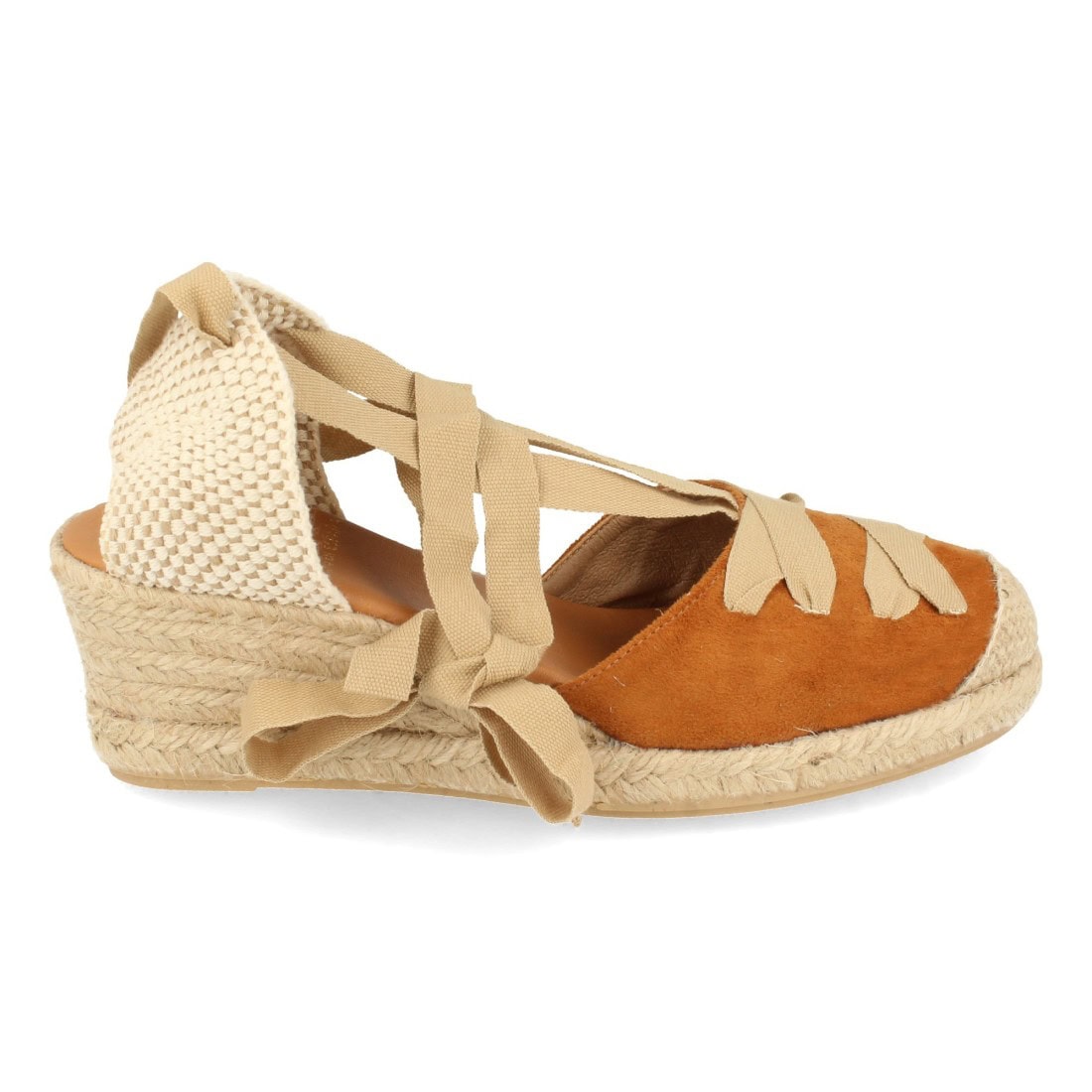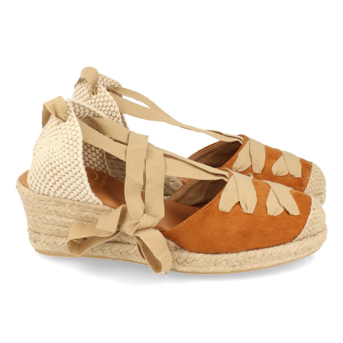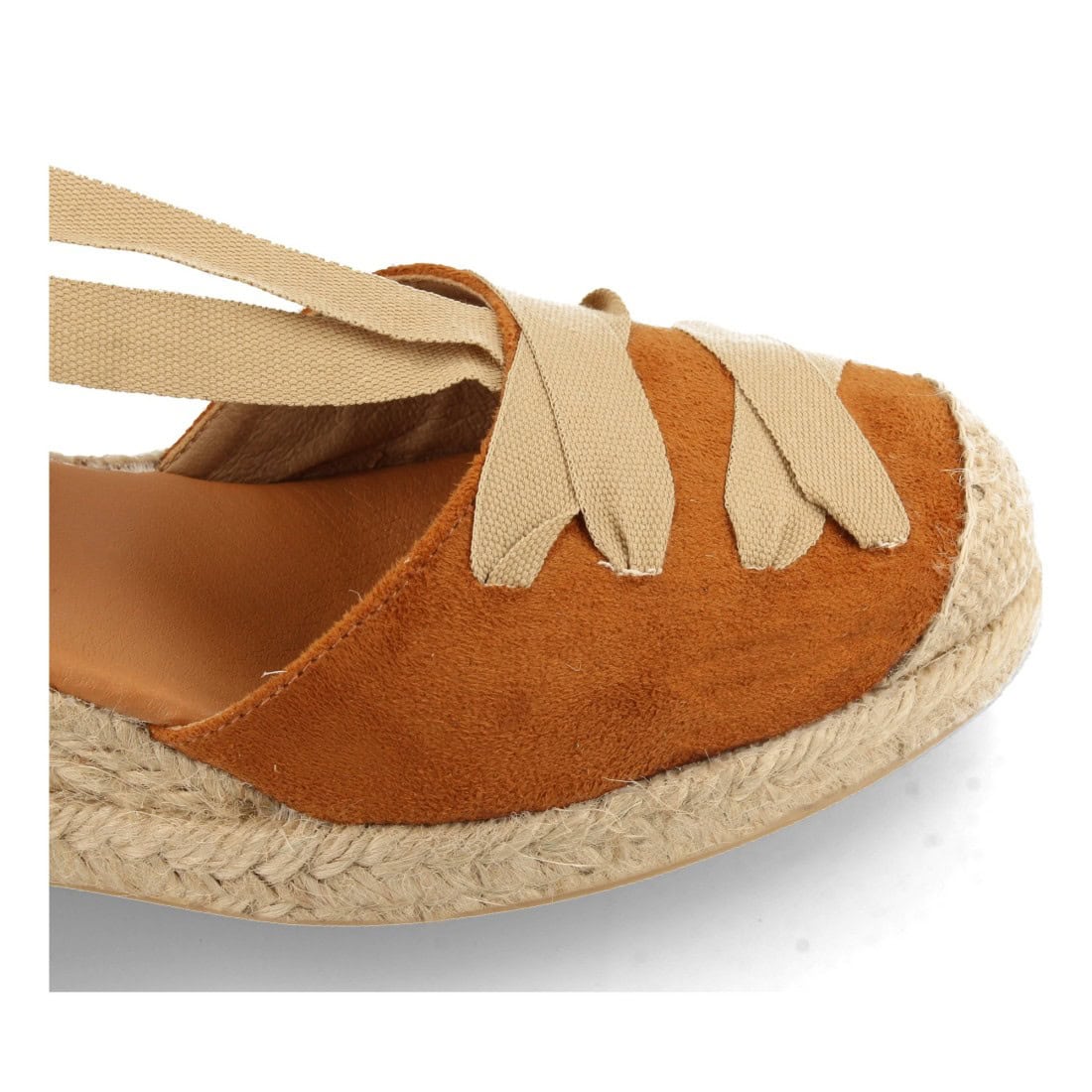 Sandalia de cuña para mujer, forrado de yute, pala cerrada, y cierre de hebilla, primavera verano.