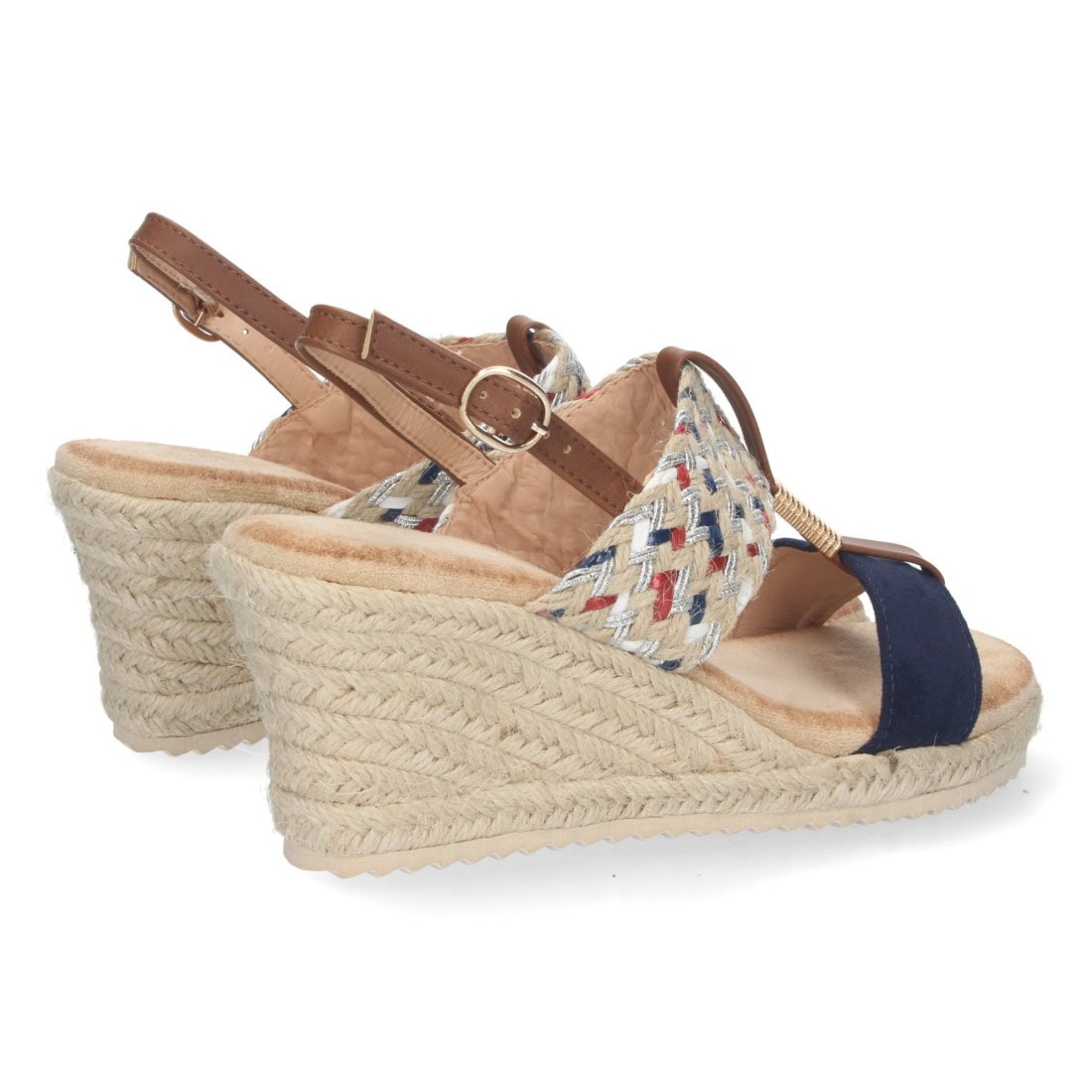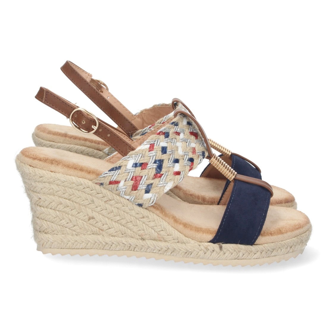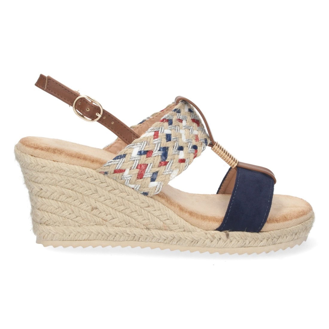 Sandalia de cuña con yute y hebilla
