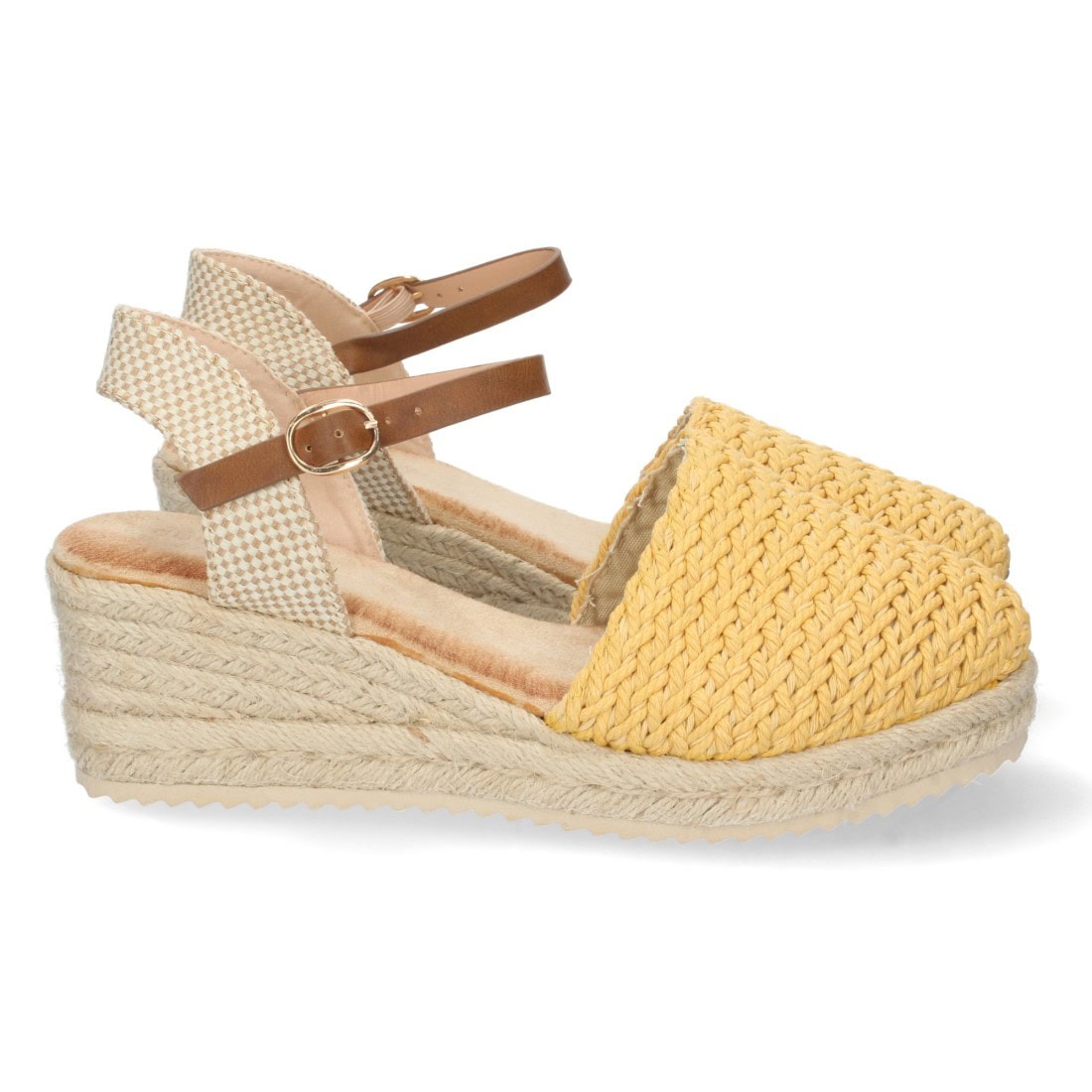 Sandalia de cuña con yute y hebilla