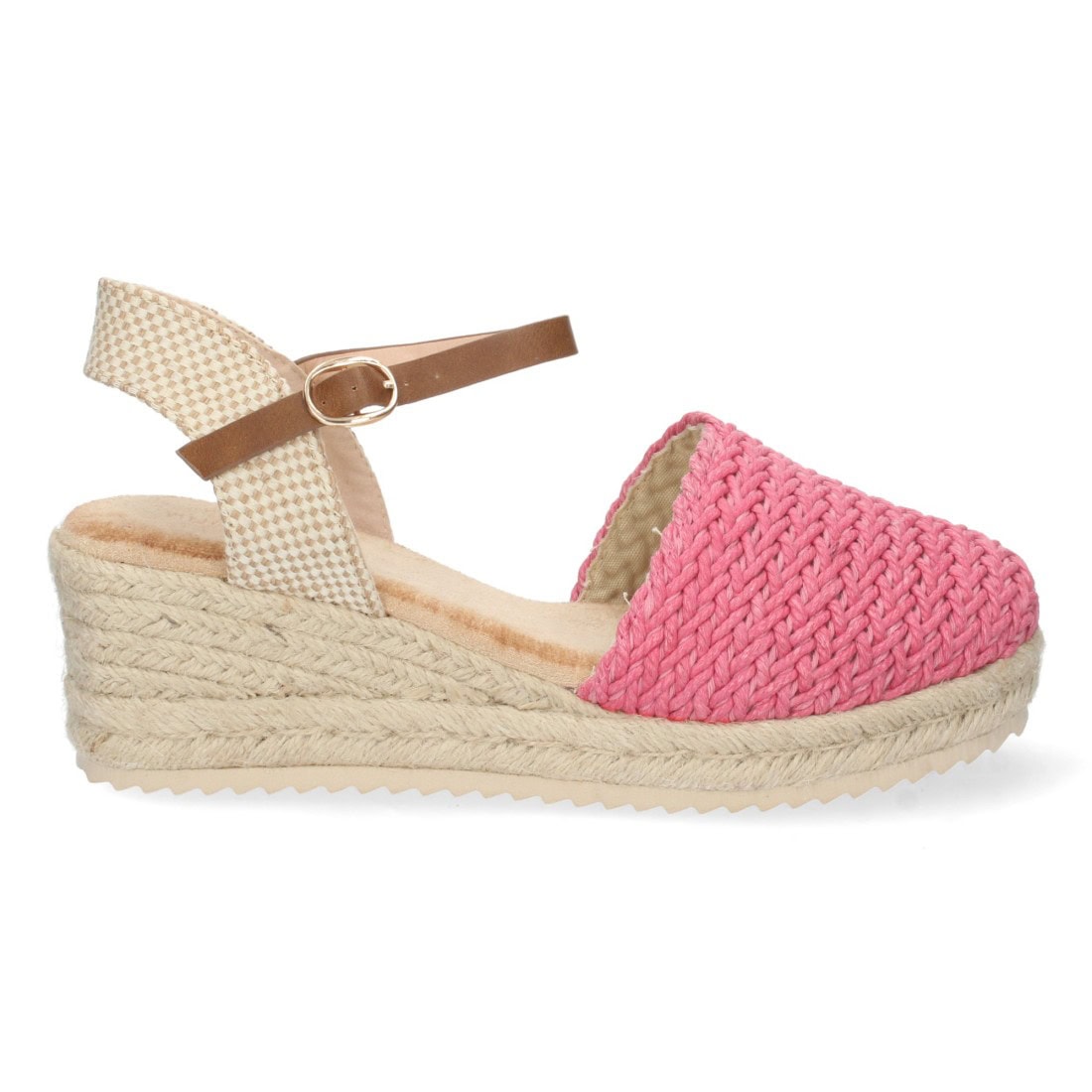 Sandalia de cuña para mujer, forrada de yute, con pala cerrada de rafia, y cierre de hebilla, primavera verano.