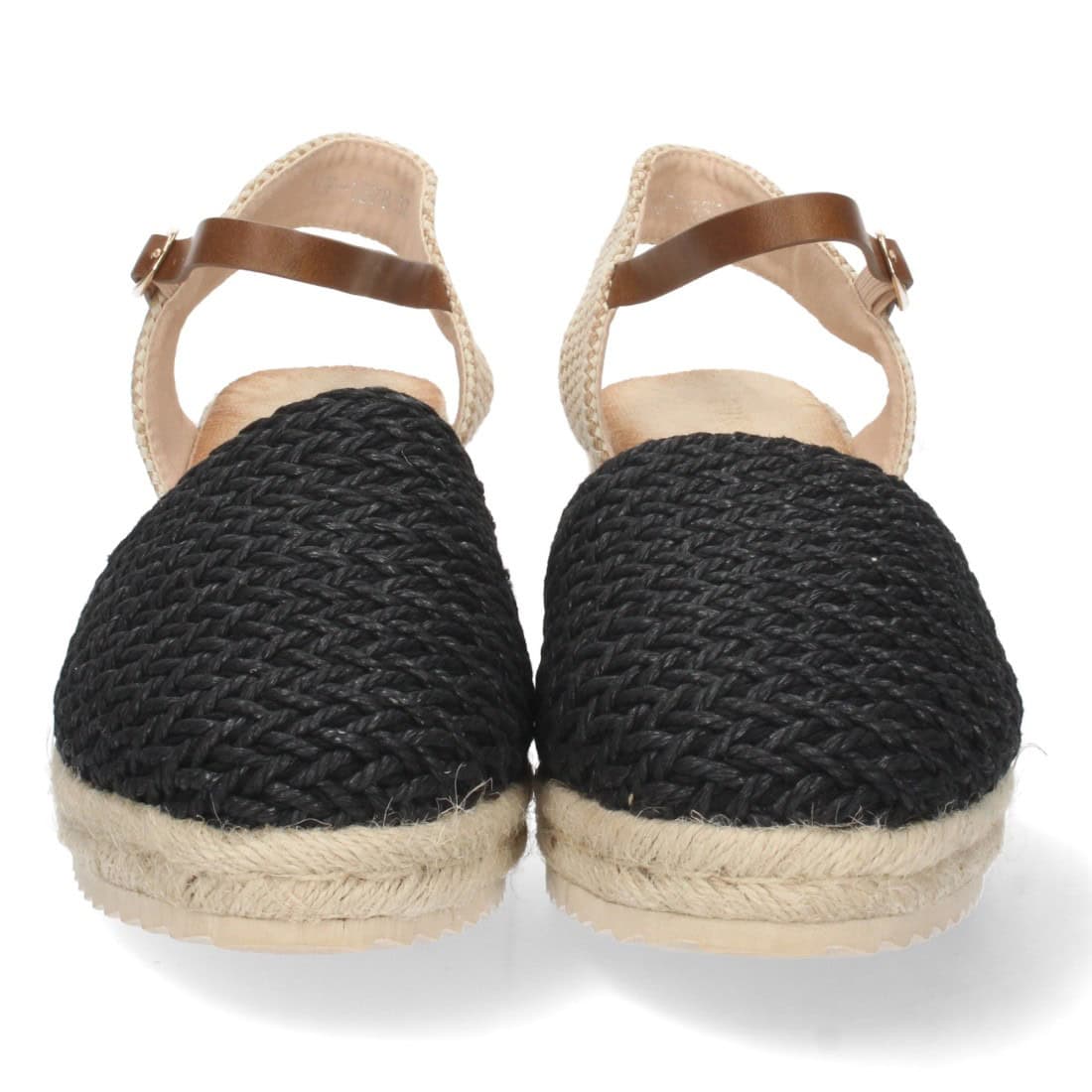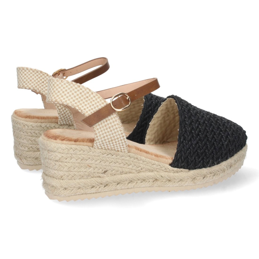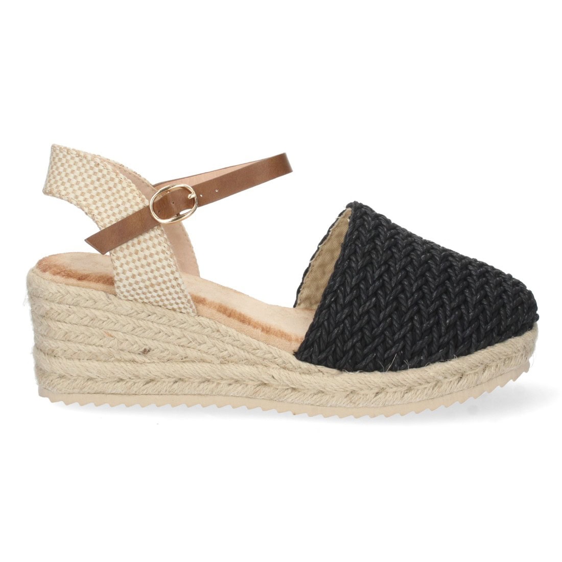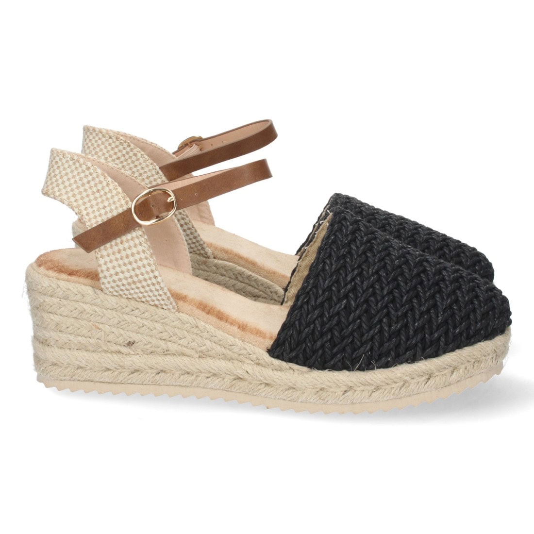 Sandalia de cuña para mujer, forrada de yute, con pala cerrada de rafia, y cierre de hebilla, primavera verano.