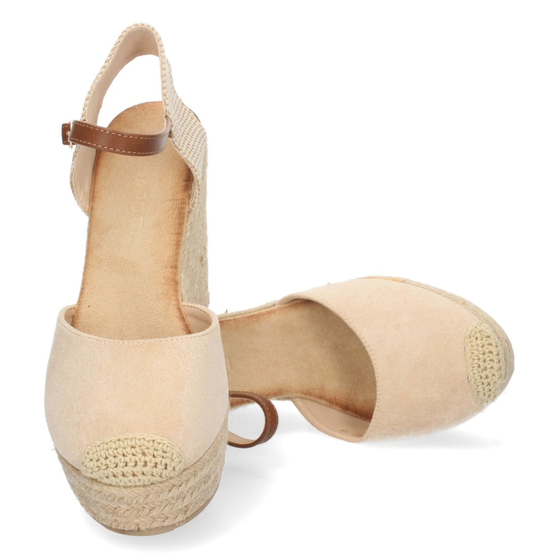 Sandalia de cuña para mujer, forrada de yute, con pala cerrada, y cierre de hebilla, primavera verano.