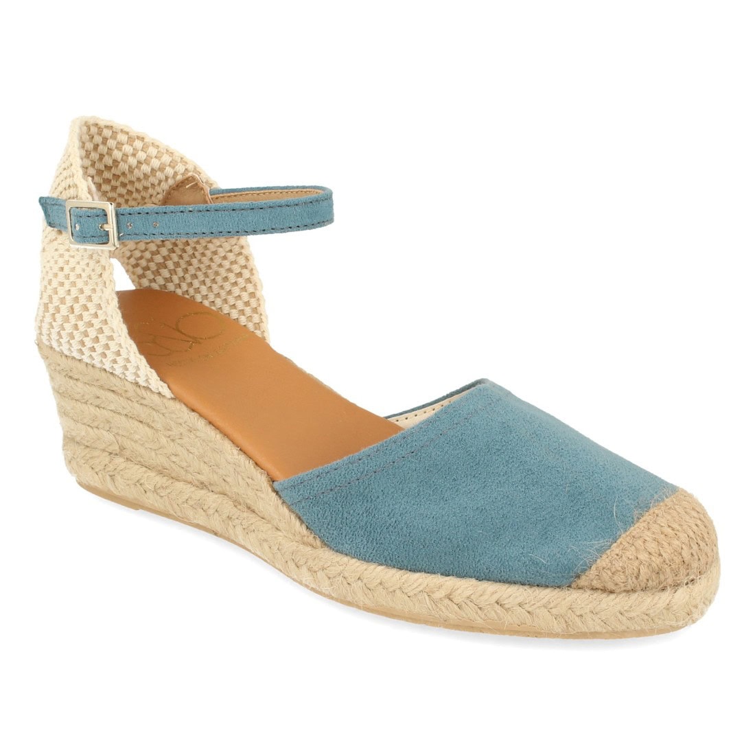 Alpargata de cuña para mujer, sandalia cerrada estilo valenciana, hecha en españa, forrada de yute 4 cuerdas, cierre de hebilla, primavera verano.
