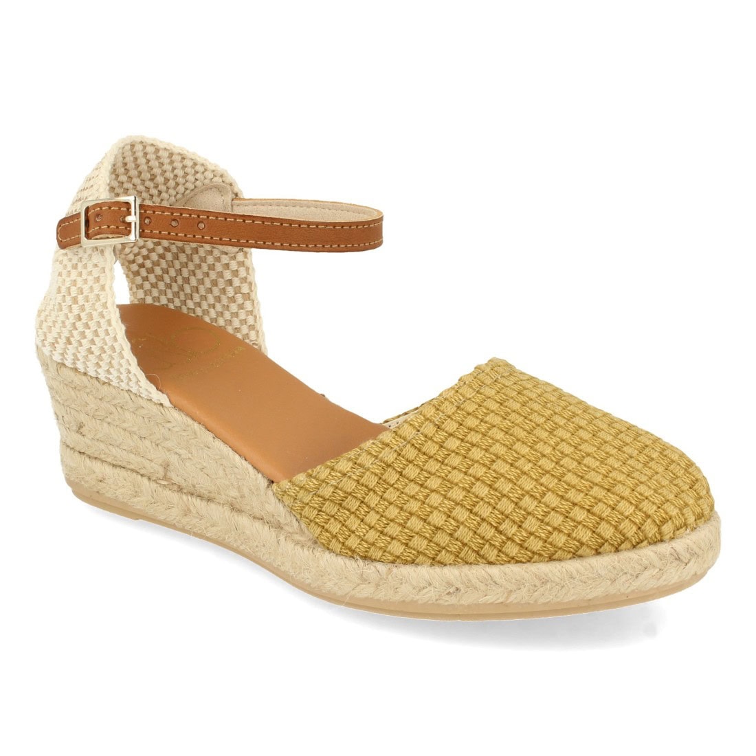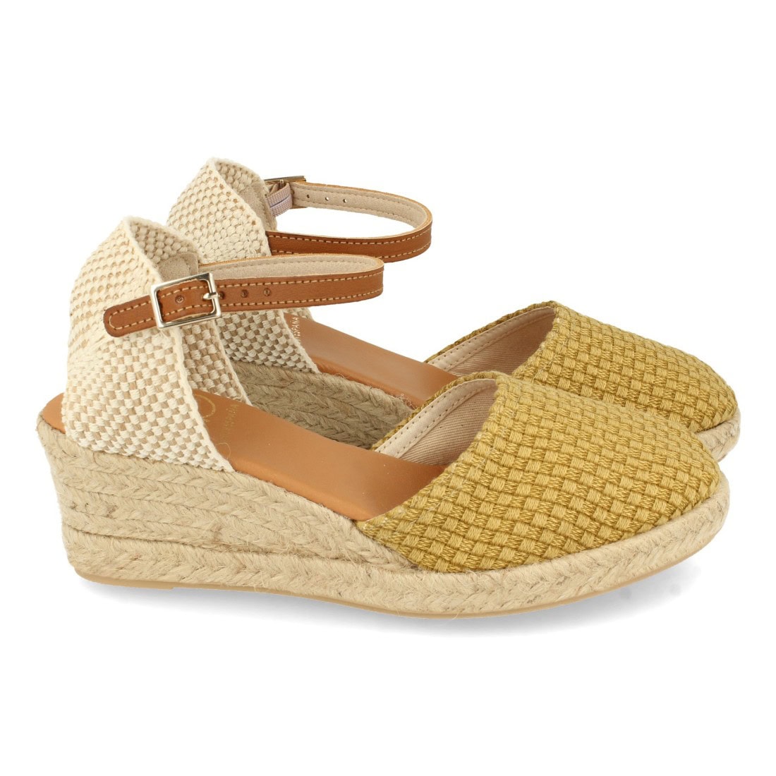 Alpargatas de cuña para mujer, sandalia cerrada estilo valenciana, hecho en españa, yute 4 cuerdas, tiras al tobillo, primavera verano.