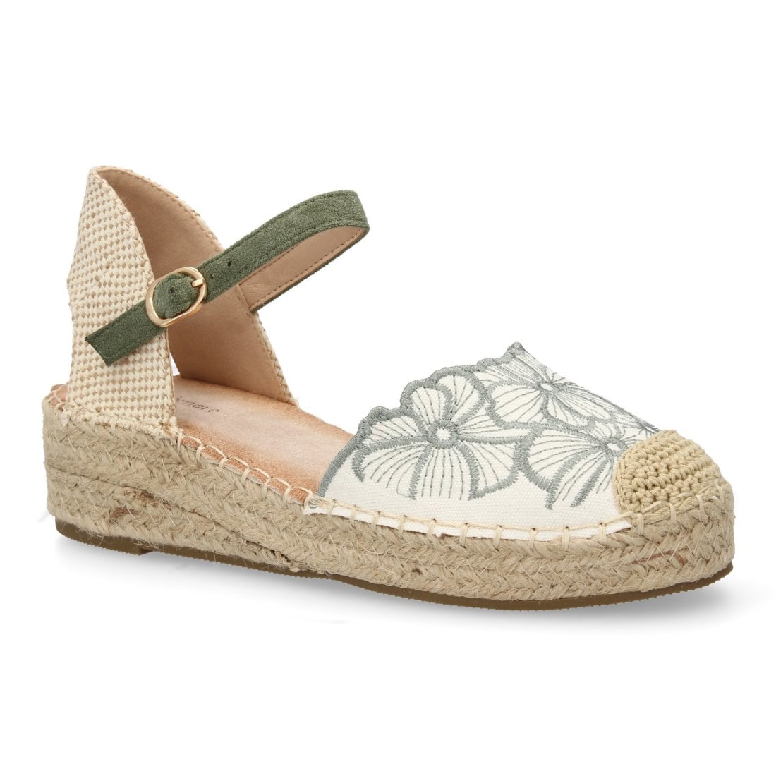 Sandalia de cuña de yute para mujer, cómodas y elegantes, diseño moderno con tiras en la pala con cierre de hebilla ideales para primavera verano.
