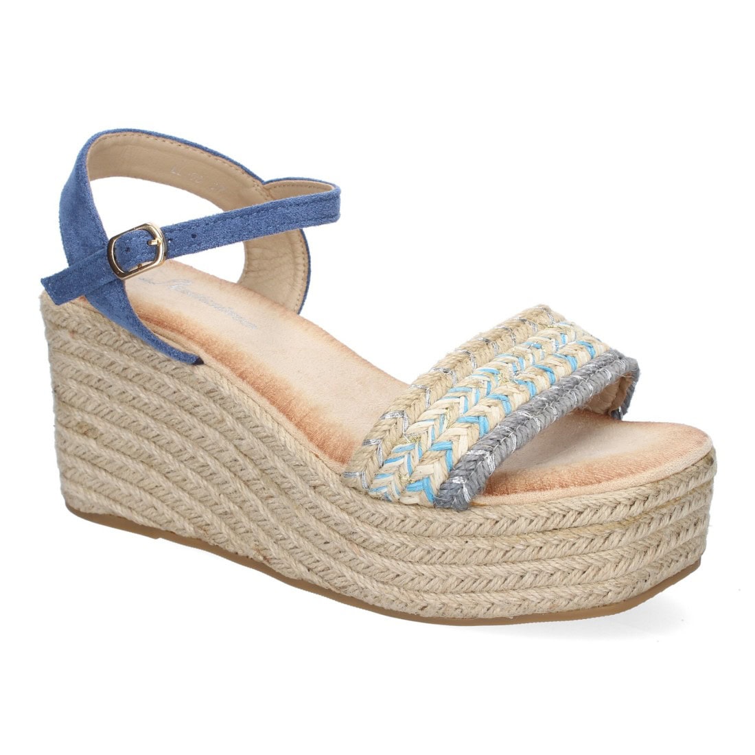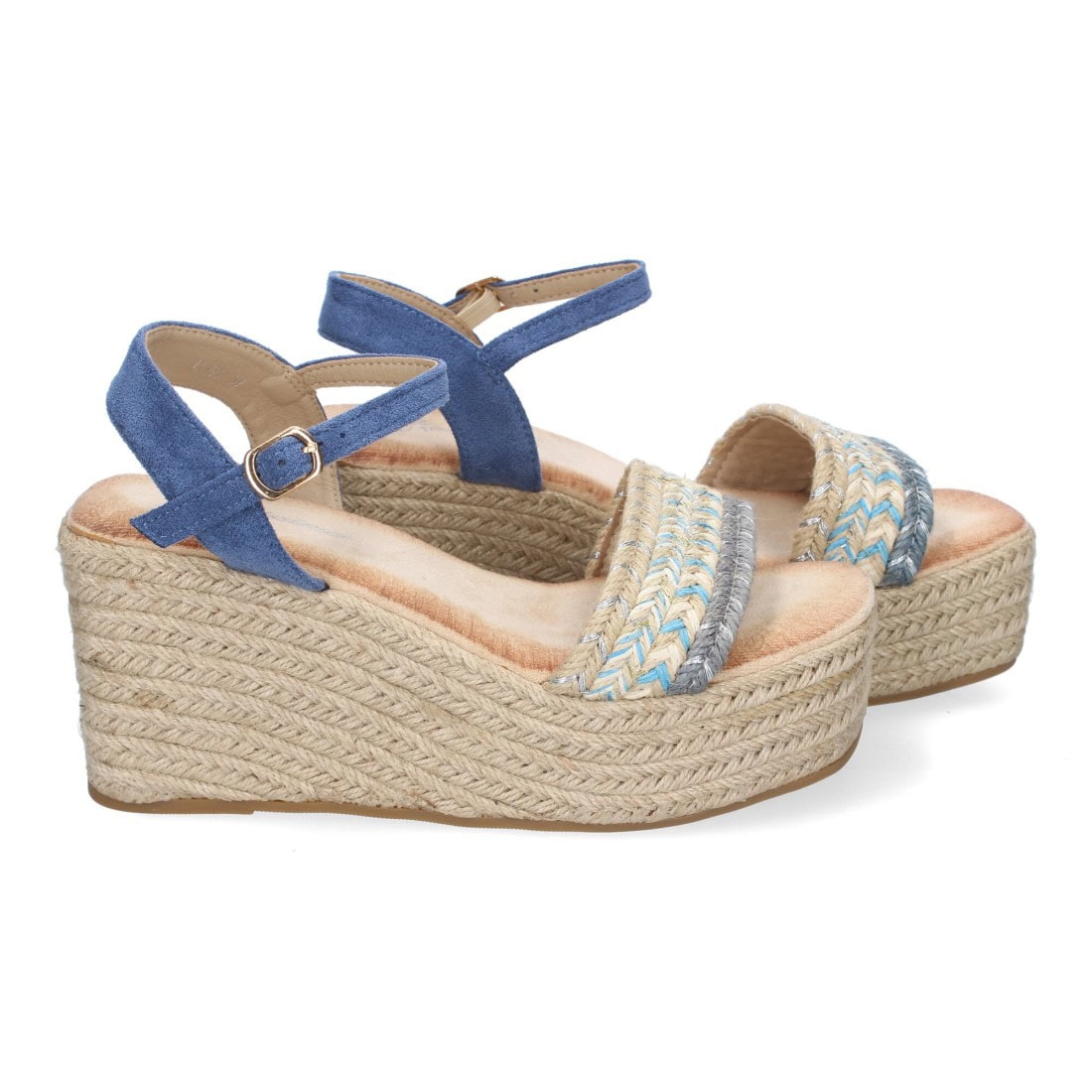 Sandalia de cuña de yute para mujer, cómodas y elegantes, diseño trenzado en la pala y cierre de hebilla, ideales para primavera-verano.