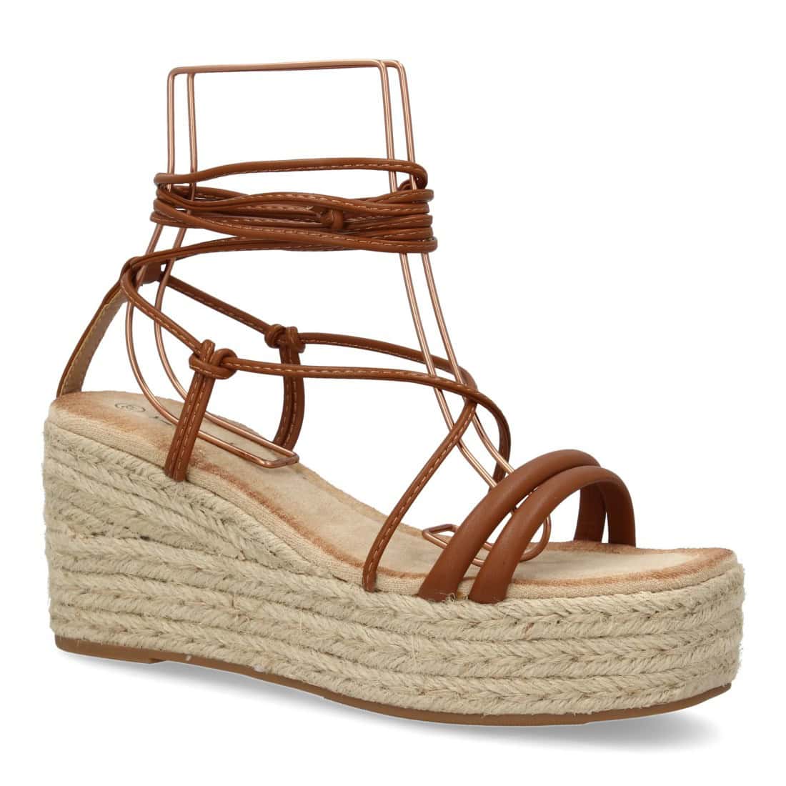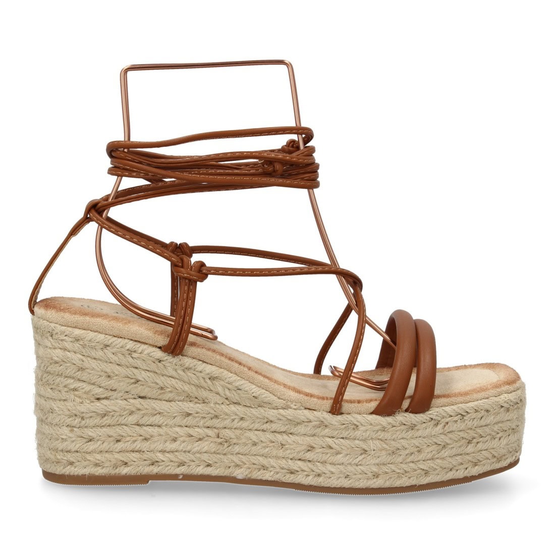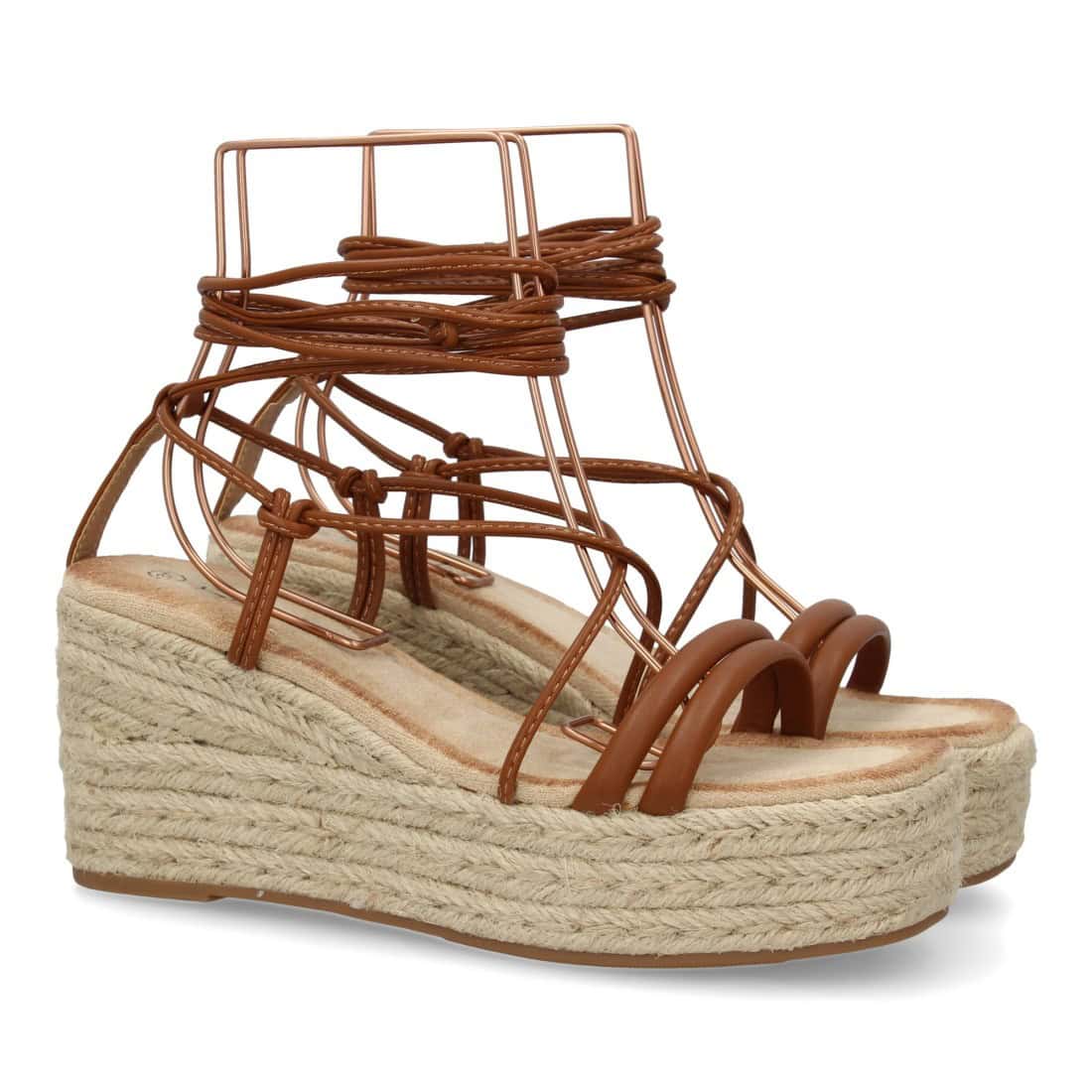 Sandalia de cuña de yute para mujer, cómodas y elegantes, diseño moderno con tiras cruzadas