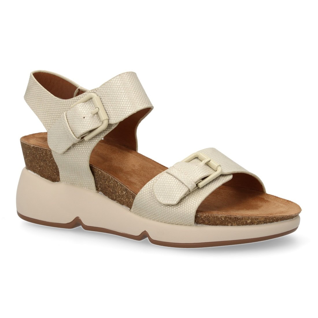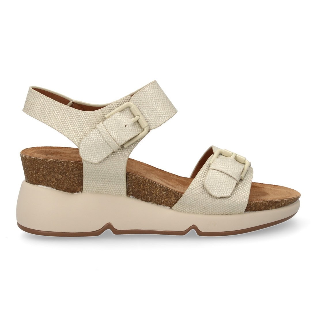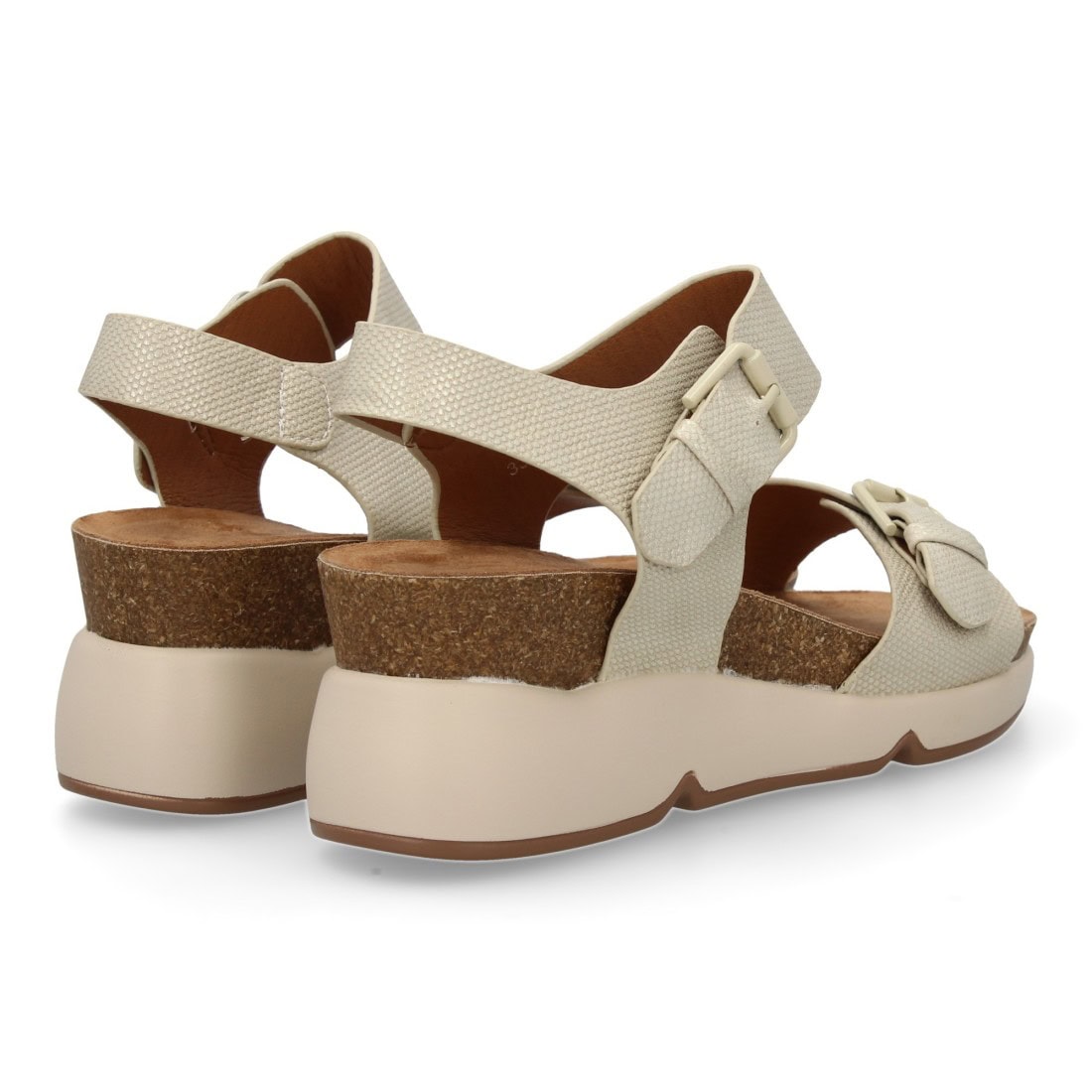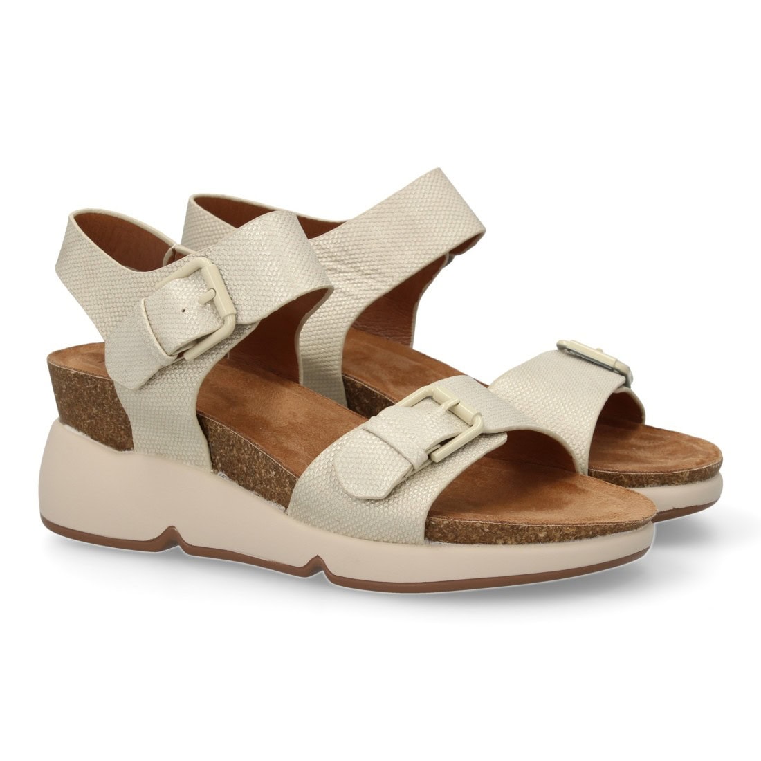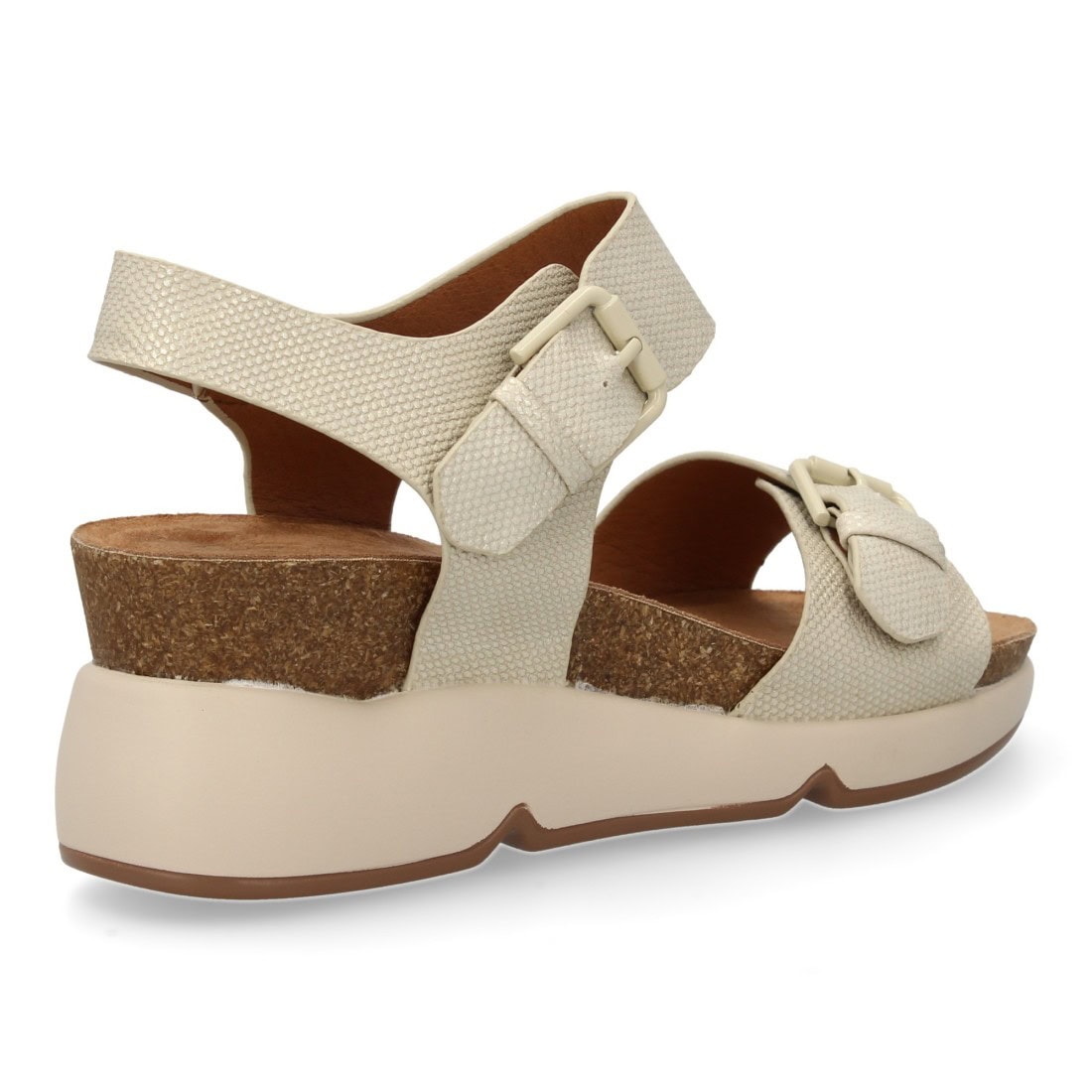 Sandalia de cuña para mujer con planta bio, diseño moderno con doble cierre de hebilla