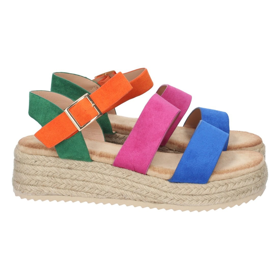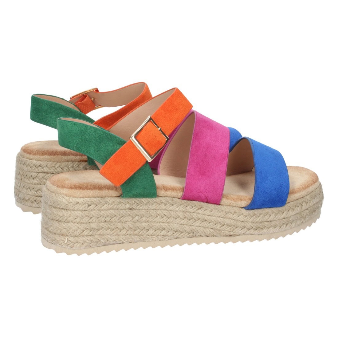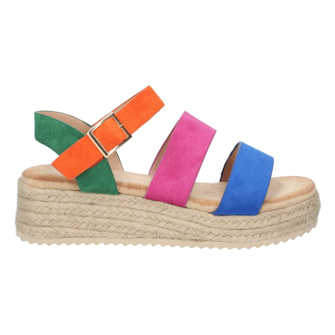 Sandalia plana para mujer, cómodas, forrada de yute multicolor, pala de simple, y cierre de ajuste al talón, primavera verano.