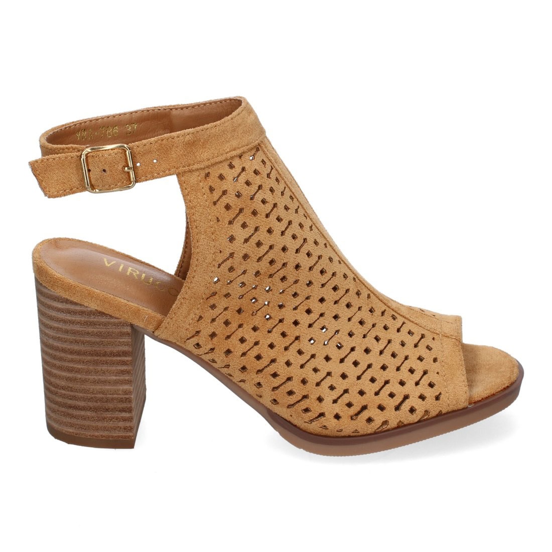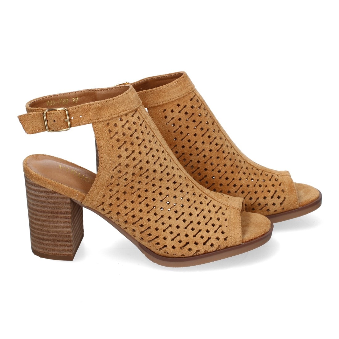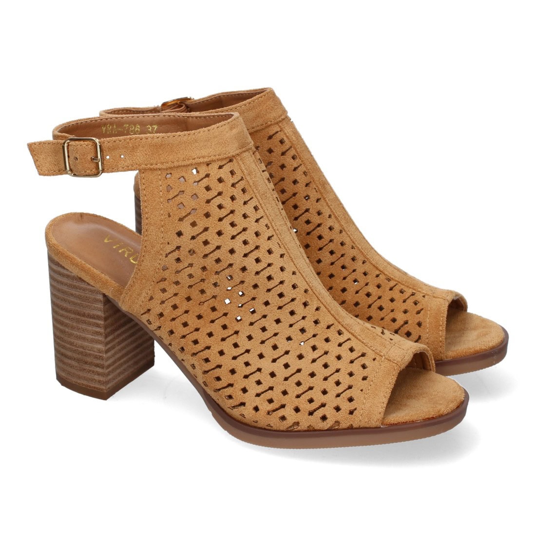 Sandalia de tacón para mujer, con calados y detalles de costura, punta y talon abiertos