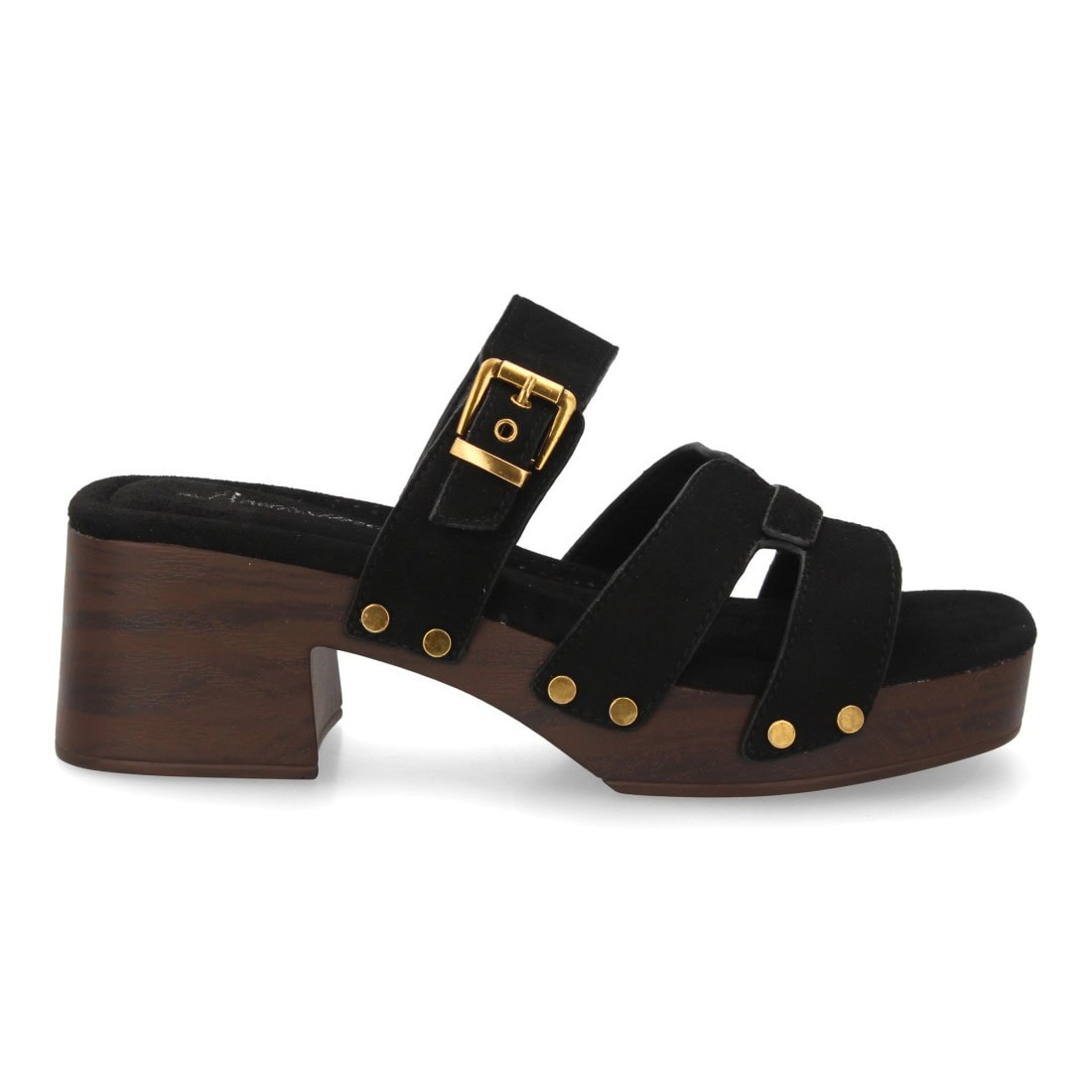 Sandalia pala mujer tacón anchocon tachuelas