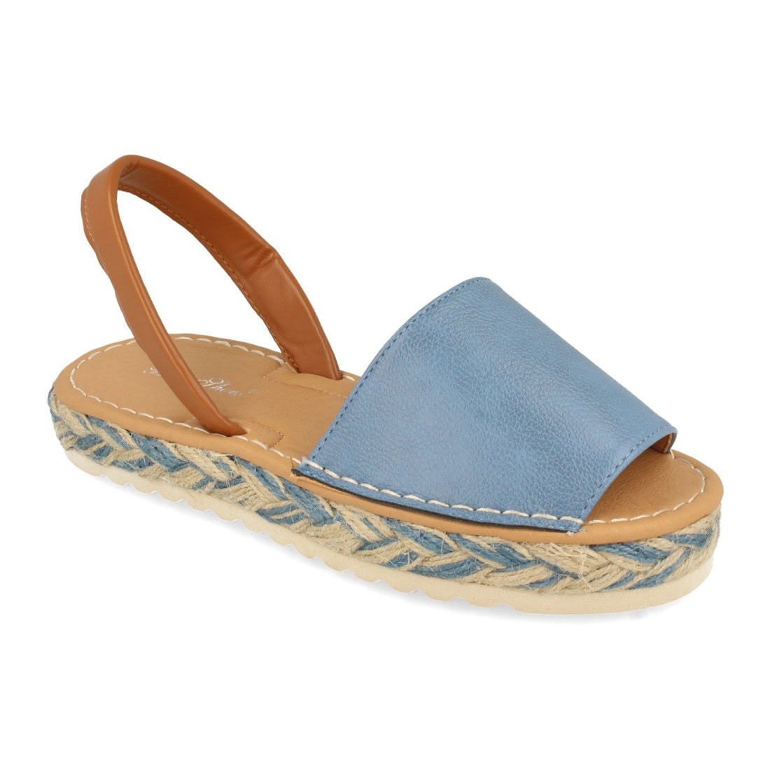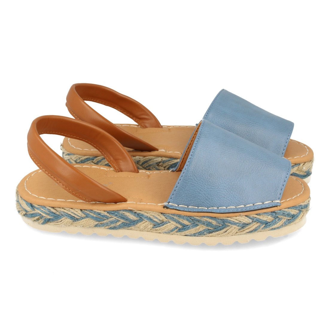 Sandalia plana para mujer, forrada de yute, planta anatomica, palas cruzadas, talón abierto, y piso de eva primavera verano.