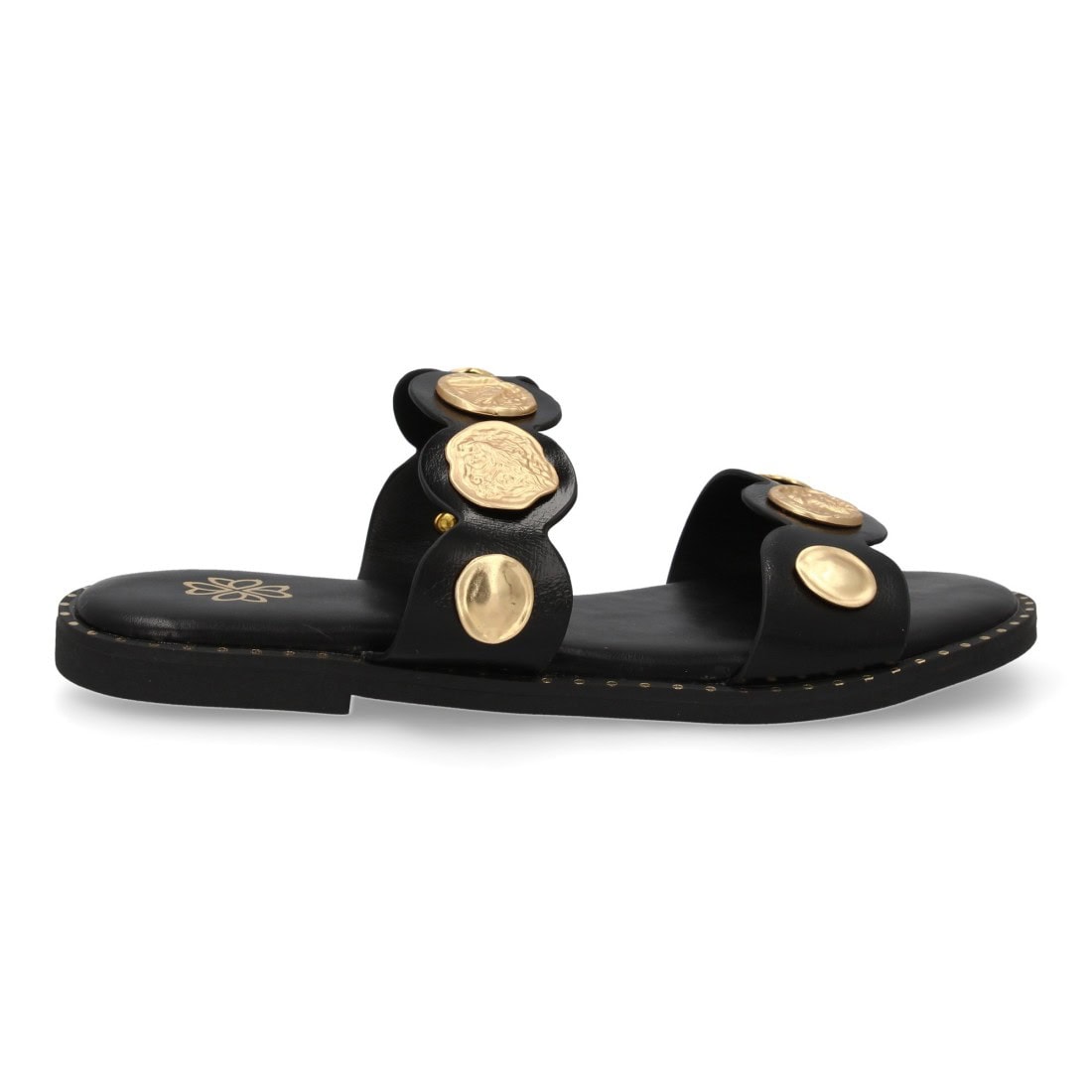 Sandalia planas de mujer, cómodas y elegantes, diseño moderno con detalles metalicos
