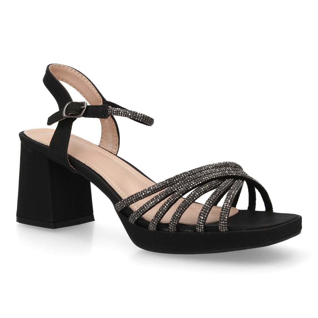Sandalia tacón fino fiesta con brillo Sandalia tacón fino fiesta con brillo El precio original era: 82,48 €.El precio actual es: 32,99 €.