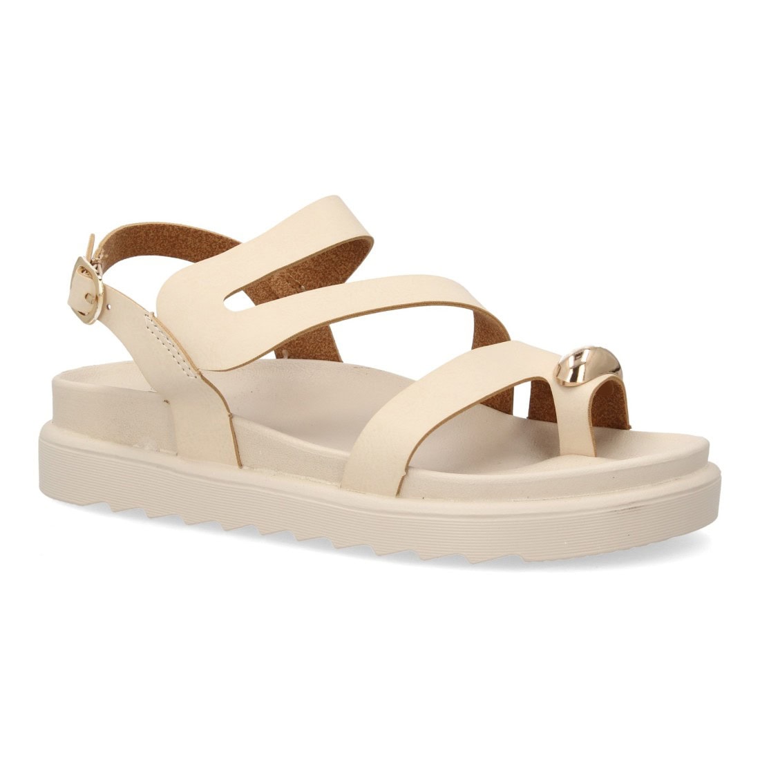 Sandalias cómodas de tiras mujer con adorno metálico Sandalias cómodas de tiras mujer con adorno metálico El precio original era: 69,98 €.El precio actual es: 27,99 €.