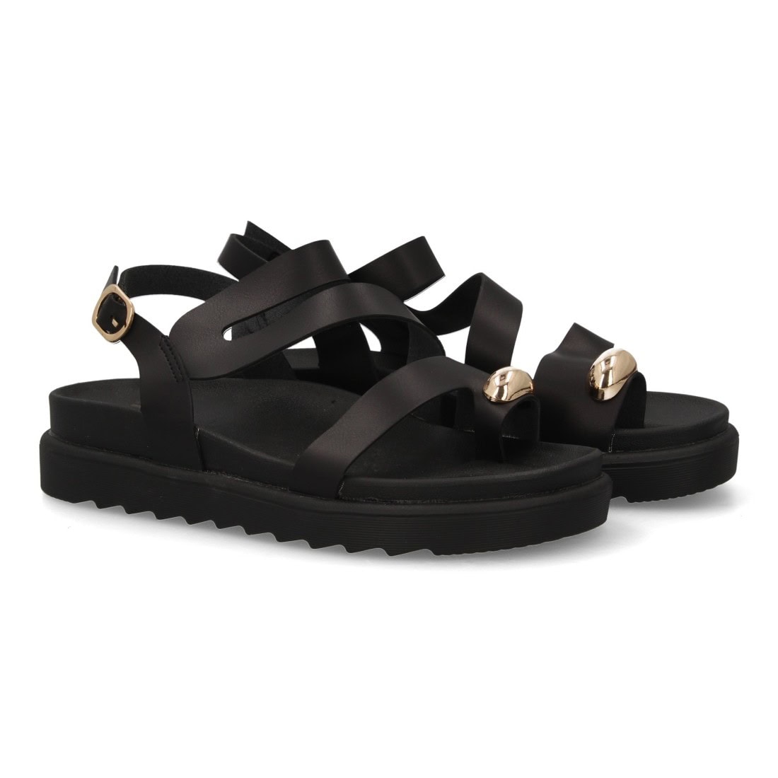 Sandalias planas elegantes mujer con adorno metálico Sandalias planas elegantes mujer con adorno metálico El precio original era: 62,48 €.El precio actual es: 24,99 €.