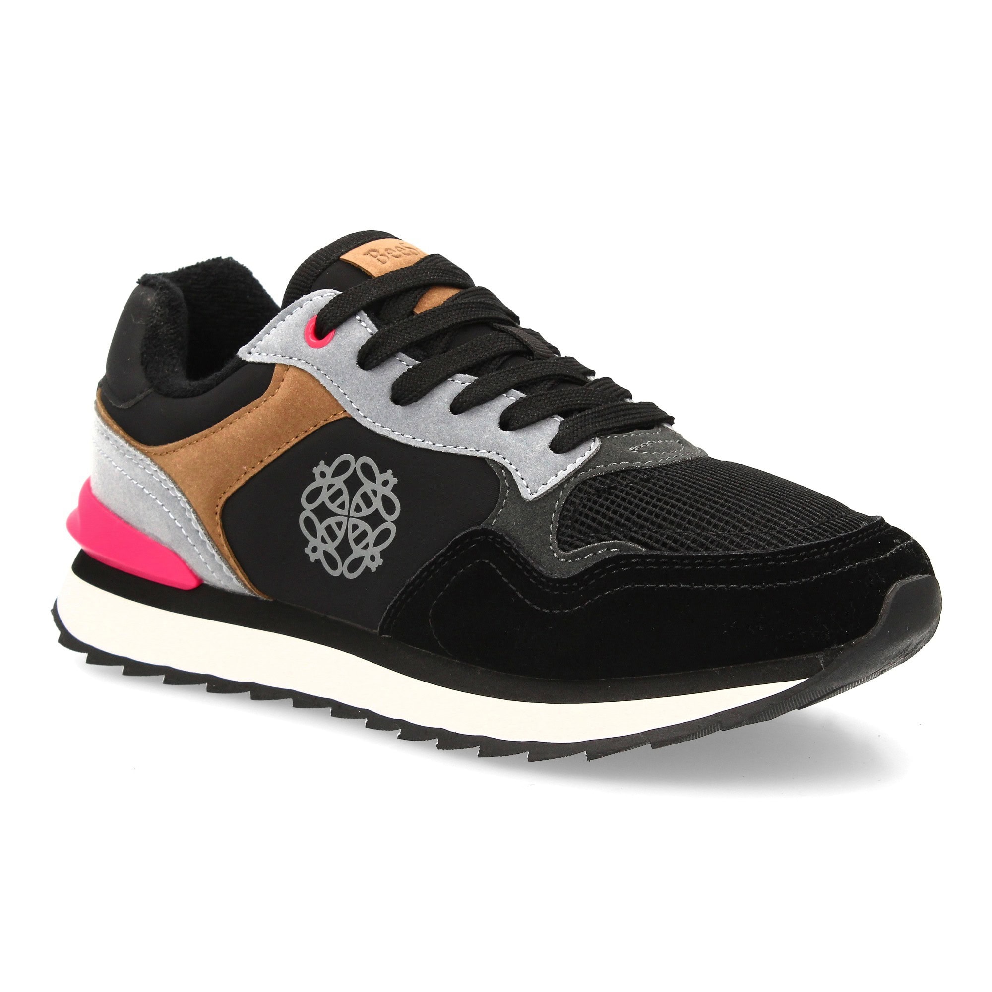 Zapatilla deportiva para mujer con diseño moderno combina diferentes texturas. Malla transpirable en la parta frontal. Ideal para mujer en cualquier temporada. Cierre de cordones.