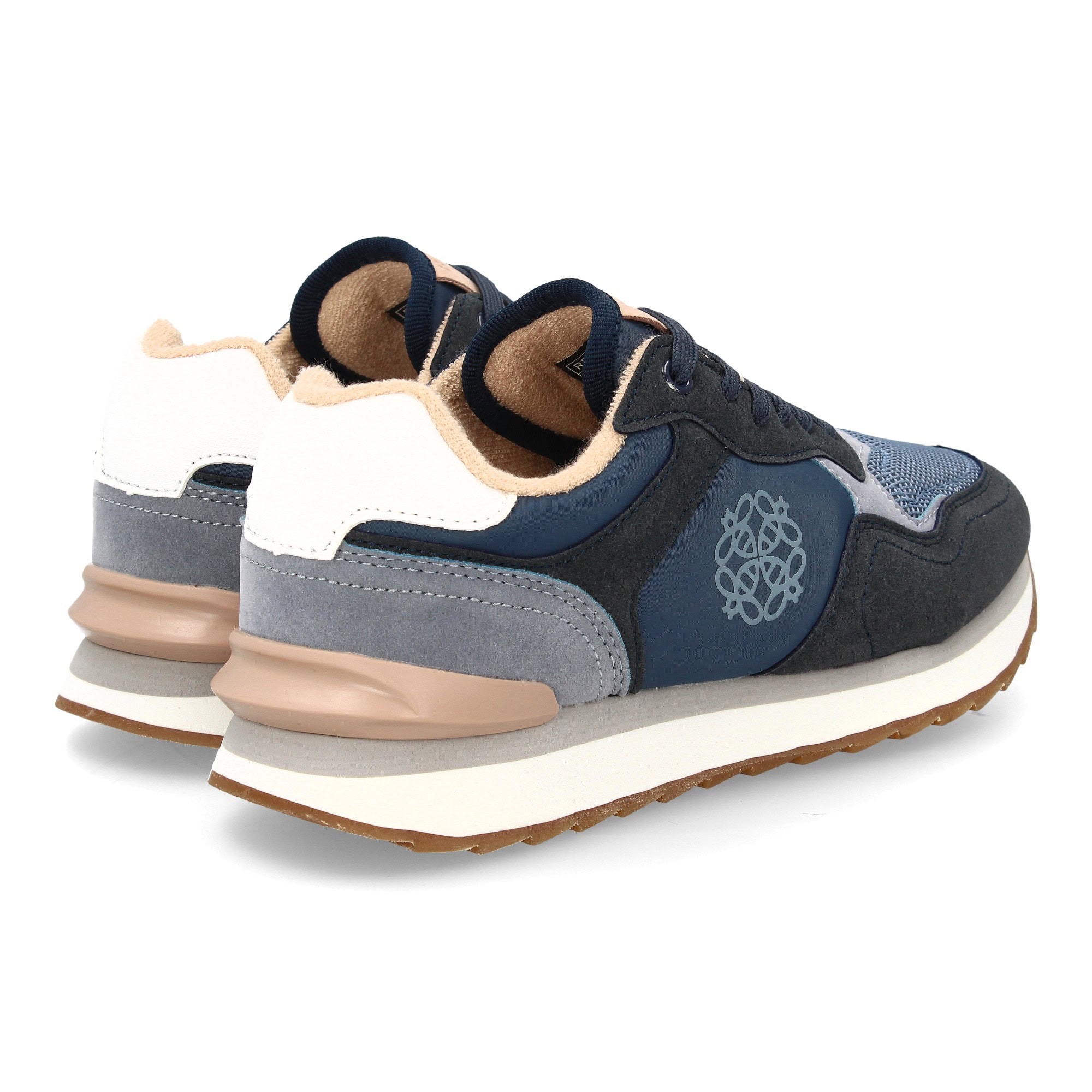 Zapatilla deportiva para mujer con diseño moderno combina diferentes texturas. Malla transpirable en la parta frontal. Ideal para mujer en cualquier temporada. Cierre de cordones.