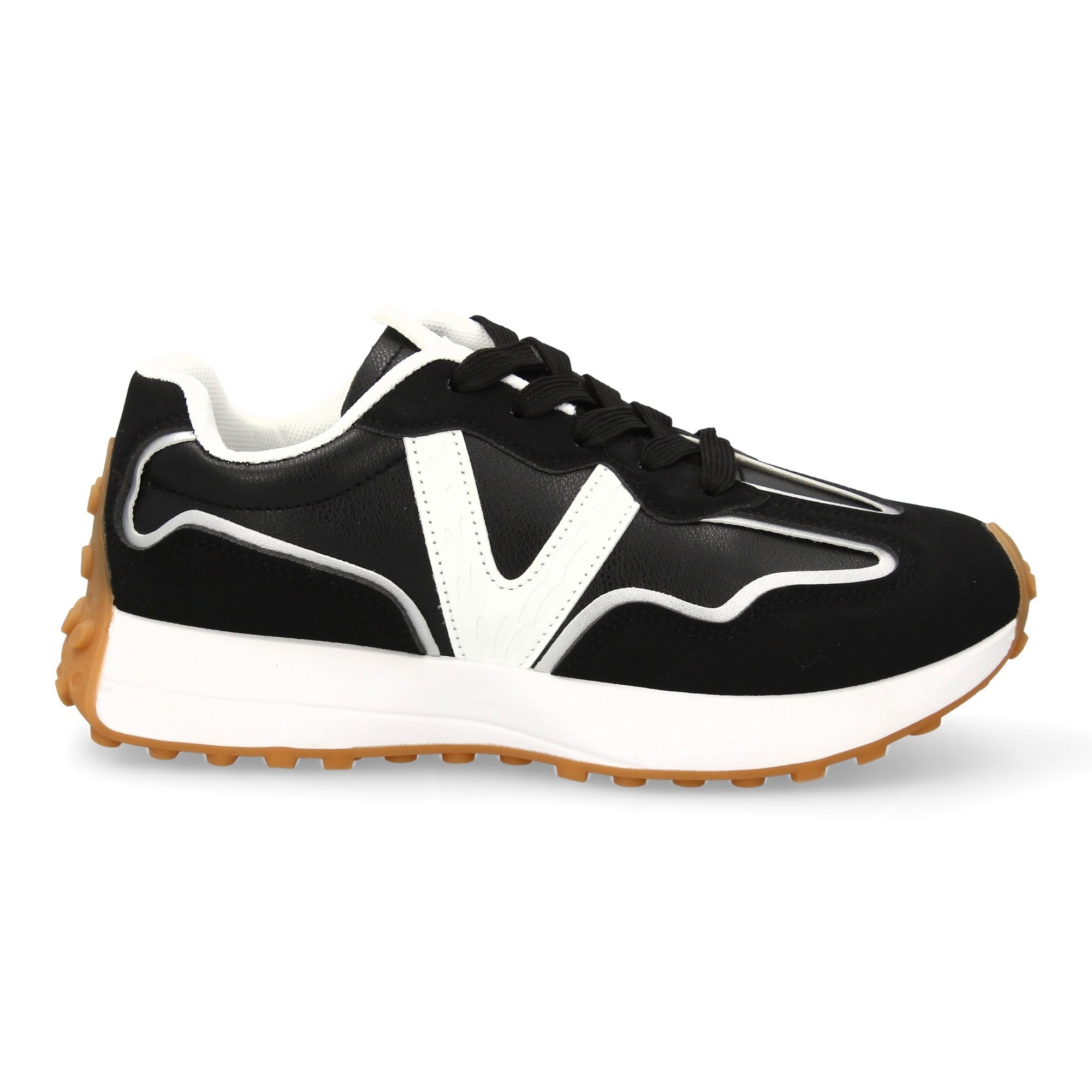 Zapatilla deportiva con diseño moderno y suela dentada. Detalles de contraste, comodas, para el día a día. Cierre de cordones. Ideal para mujer en la temporada Otoño invierno.