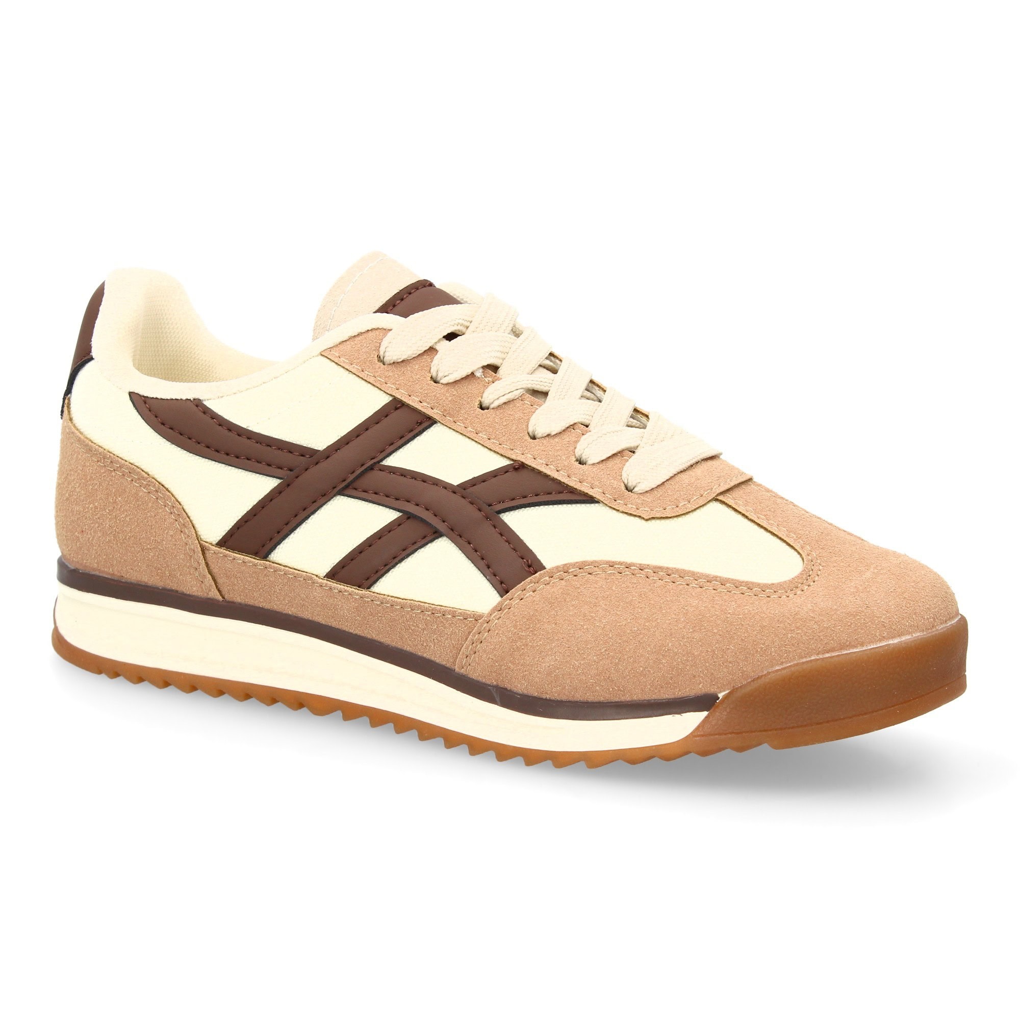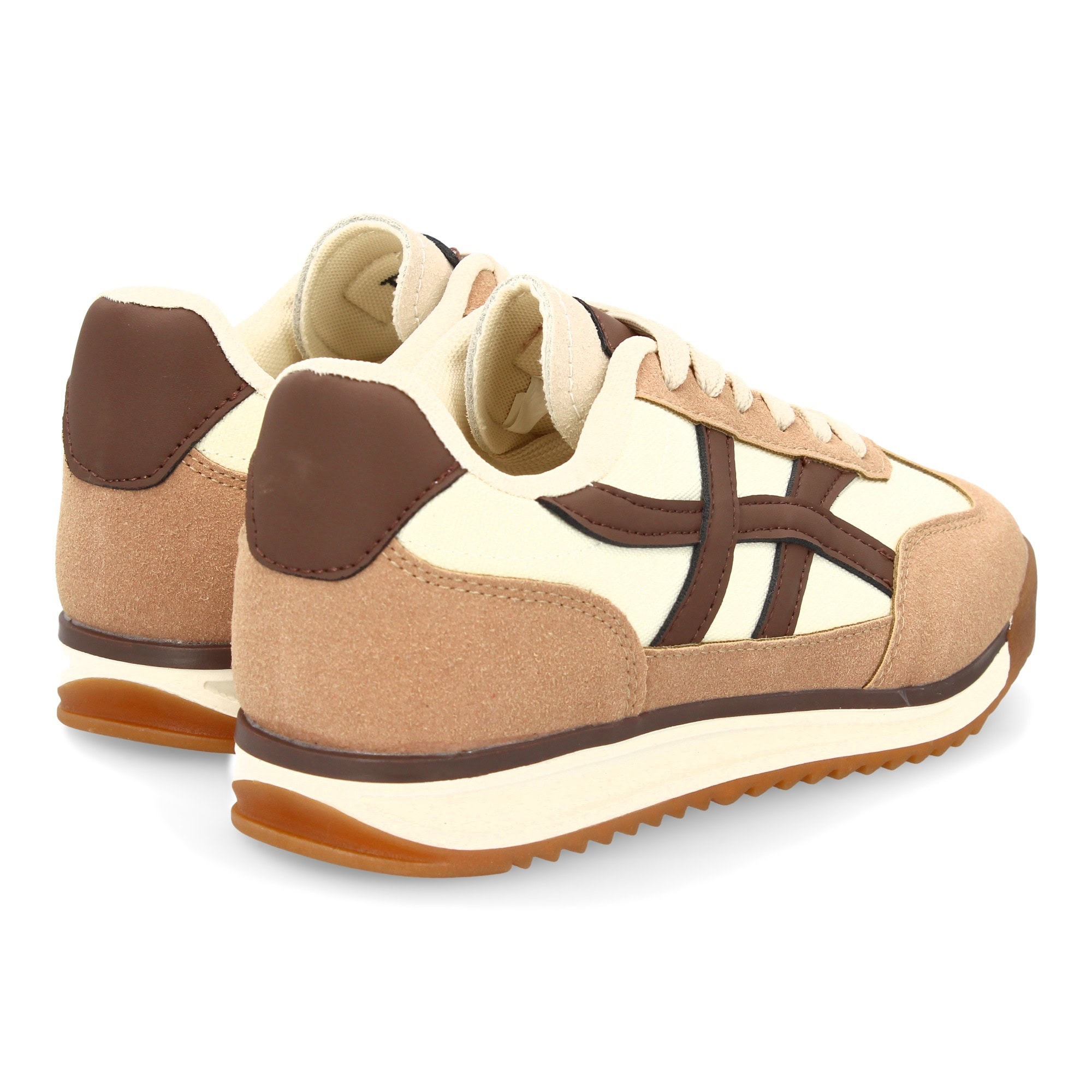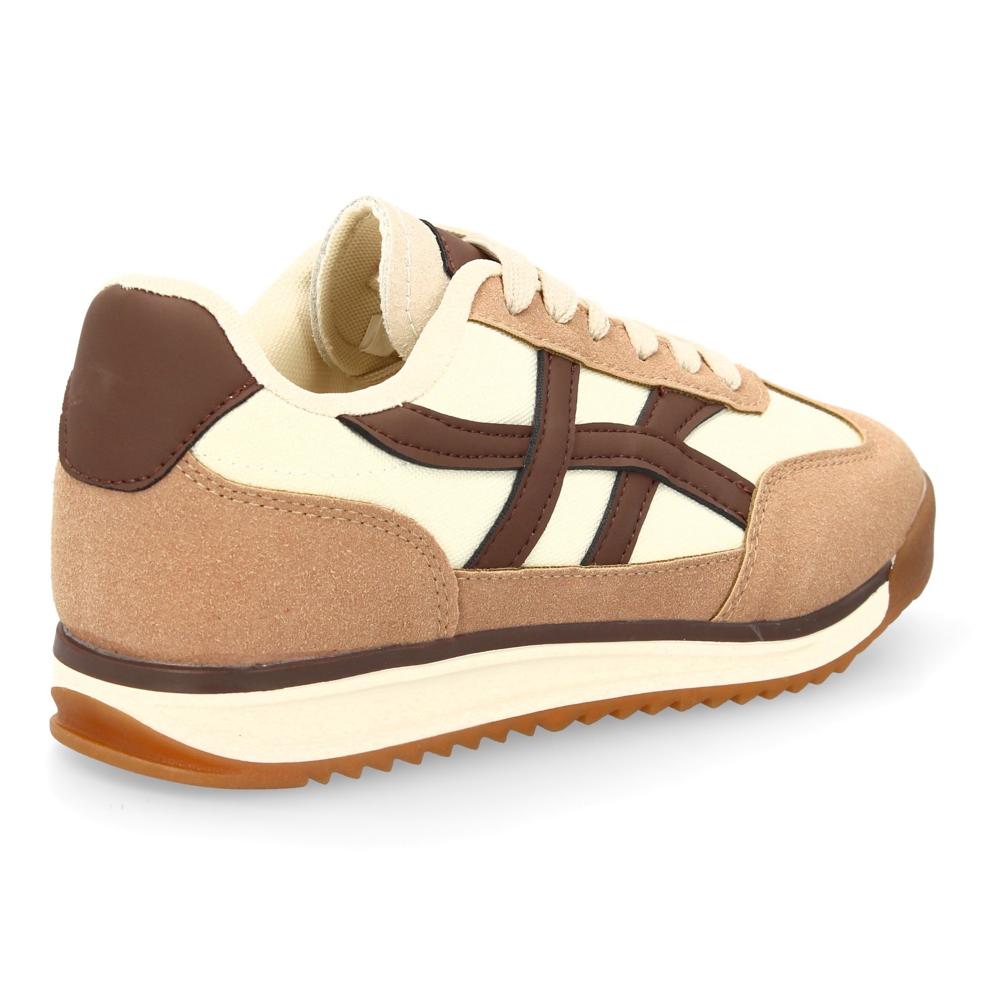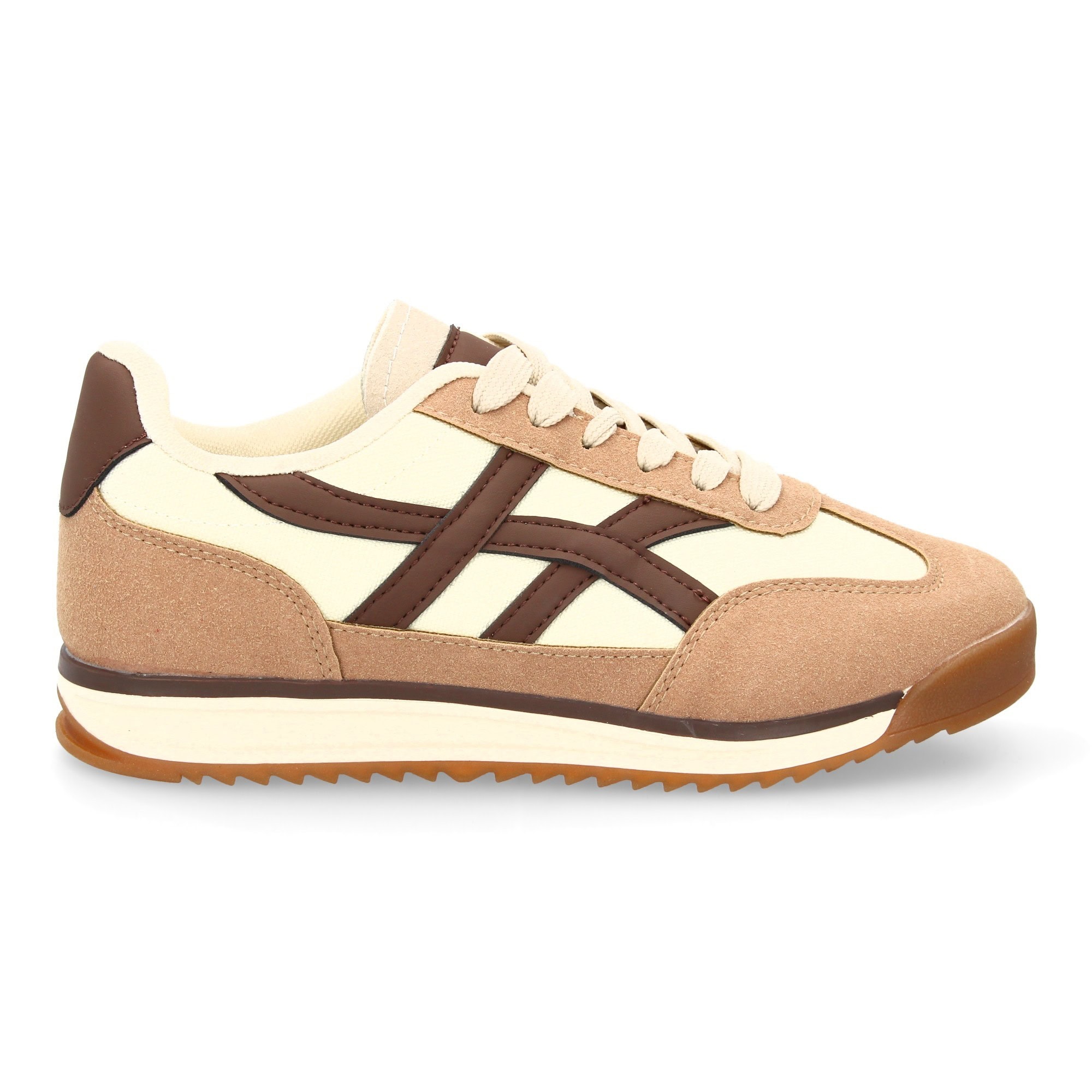 Zapatilla plana para mujer con cierre de cordones. Diseño moderno con contraste lateral. Estilo retro, ideal para la temporada de otoño invierno.